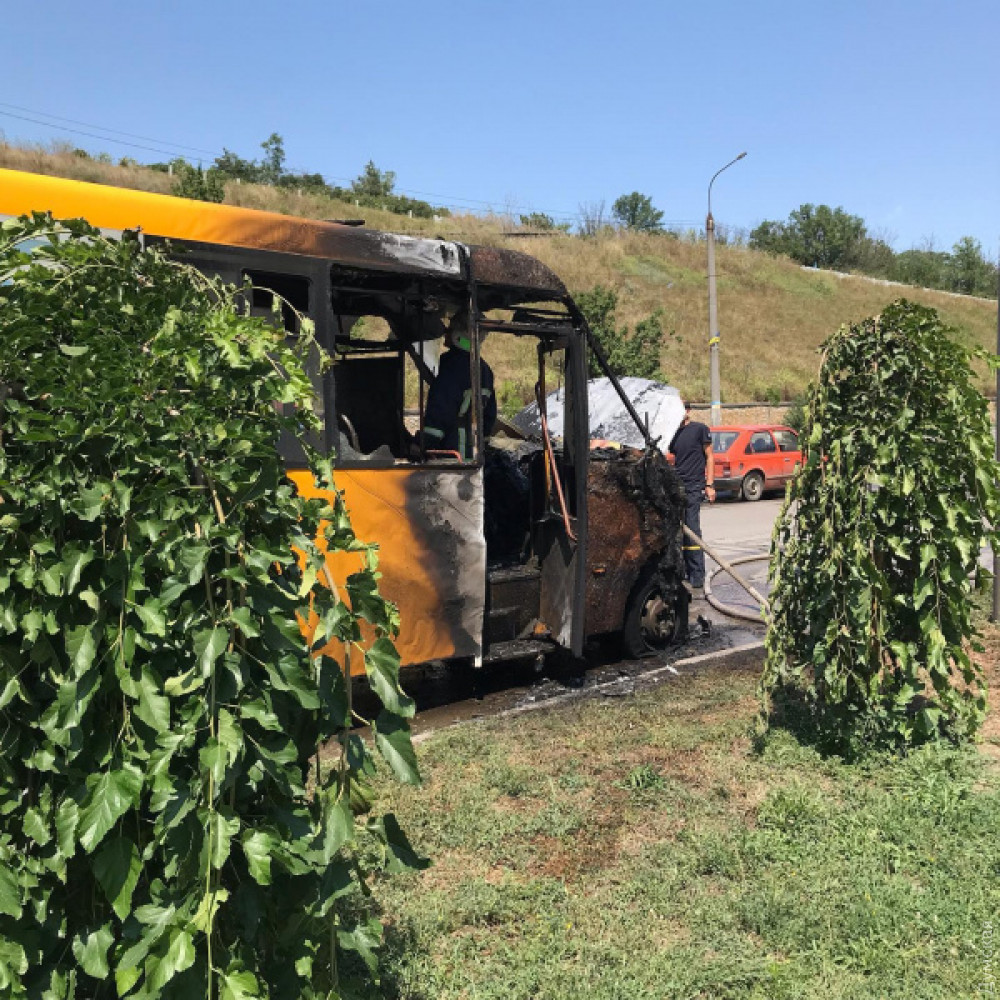 Маршрутное такси с пассажирами загорелось сегодня днем прямо время движения по Западному проспекту в городе Бердянск Запорожской область.