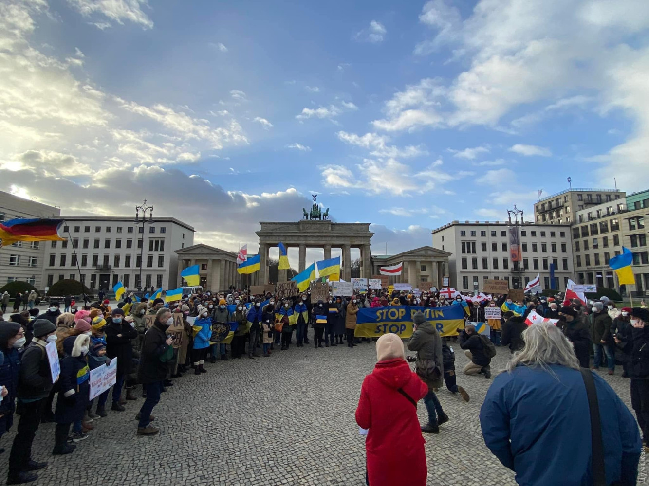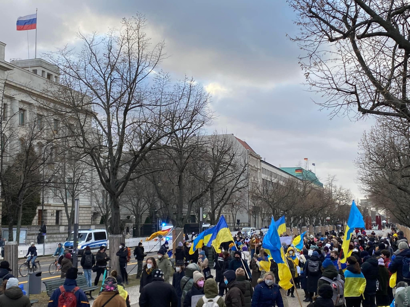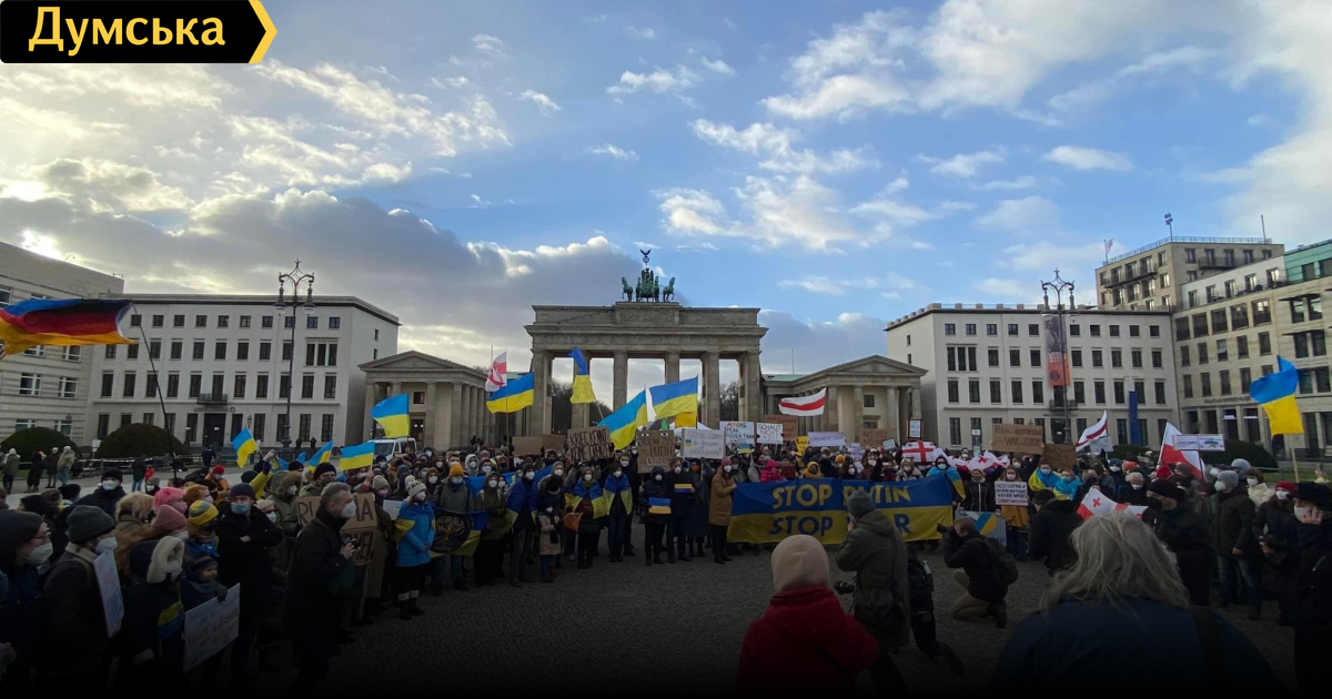 «Война не имеет границ»: в Берлине и Париже участники акции в поддержку Украины призвали правительства противостоять российской агрессииАкция под названием «Война не имеет границ» против вооруженной агрессии РФ прошла 30 января в Берлине. Как сообщило посольство Украины в Германии, на мероприятие пришли украинцы и граждане других стран, которые выступили против нового российского вторжения в Украину. «В Берлине украинцы и друзья Украины вышли на совместную акцию, чтобы в который раз продемонстрировать миру, что украинцы выступают против войны и призвать федеральное правительство использовать свое влияние на Российскую Федерацию, чтобы остановить новую российскую агрессию против нашего государства», — сообщили в посольстве. Также акция протеста состоялась в Париже. Участники требовали от французского правительства больше санкций против России, выступали против проекта «Северный поток-2» и против новой войны в Европе. СМЕРТЬ РОСІЙСЬКИМ ОКУПАНТАМ! Помітили помилку? Виділяйте слова з помилкою та натискайте control-enter |