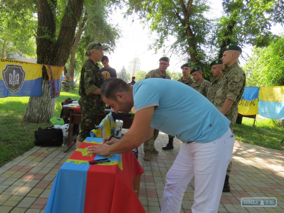 «Цель акции — объединить Украину, пронести дух патриотизма по всем городам, почтить память героев Майдана и войны на Донбассе», — рассказала волонтер Екатерина Валевская. Прохожие подходили и оставляли свои пожелания на разных языках (русском, украинском, английском, болгарском) на флаге Болграда, который впоследствии станет частью цепи флагов. Также люди писали свои послания в книге обращений к Президенту, которая по завершению акции будет передана главе государства. После Болграда эстафету примет Арциз, а перед этим флаги побывали в Измаиле.