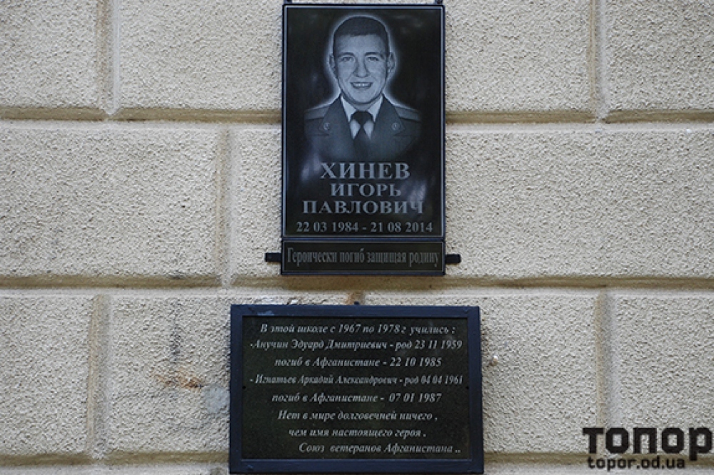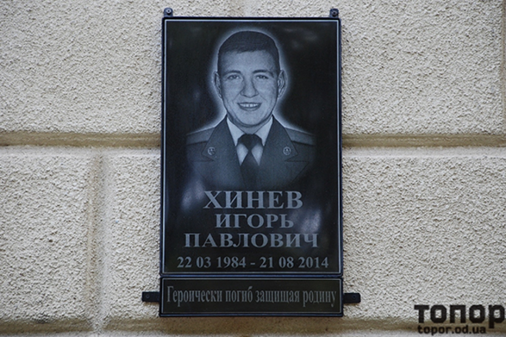 Вчера, 23 августа, в райцентре Болград Одесской области открыли мемориальную доску в честь старшего солдата Игоря Хинева, погибшего в зоне АТО. Ее установили на фасаде гимназии, где учился боец. В церемонии открытия мемориального знака приняли участие мама и брат погибшего. «У меня растет дочь, и я хочу, чтобы был еще и сын. Теперь я могу им не только рассказать о том, каким был мой брат и их дядя, но и показать то, как в родном городе берегут память о нем», — сказал во время выступления брат погибшего воина Александр Хинев. Заместитель командира взвода, старший солдат 28-й гвардейской отдельной механизированной бригады Игорь Хинев погиб 21 августа прошлого года на поле боя в районе Амвросиевки (Донецкая обл.) во время артиллерийского обстрела. Он совершил подвиг, прикрыв своей грудью сослуживцев, и спася жизнь двух боевых товарищей. Игорь Павлович Хинев награжден орденом «За мужество» 3 степени (посмертно). По материалам издания «Топор» СМЕРТЬ РОССИЙСКИМ ОККУПАНТАМ! Заметили ошибку? Выделяйте слова с ошибкой и нажимайте control-enter |