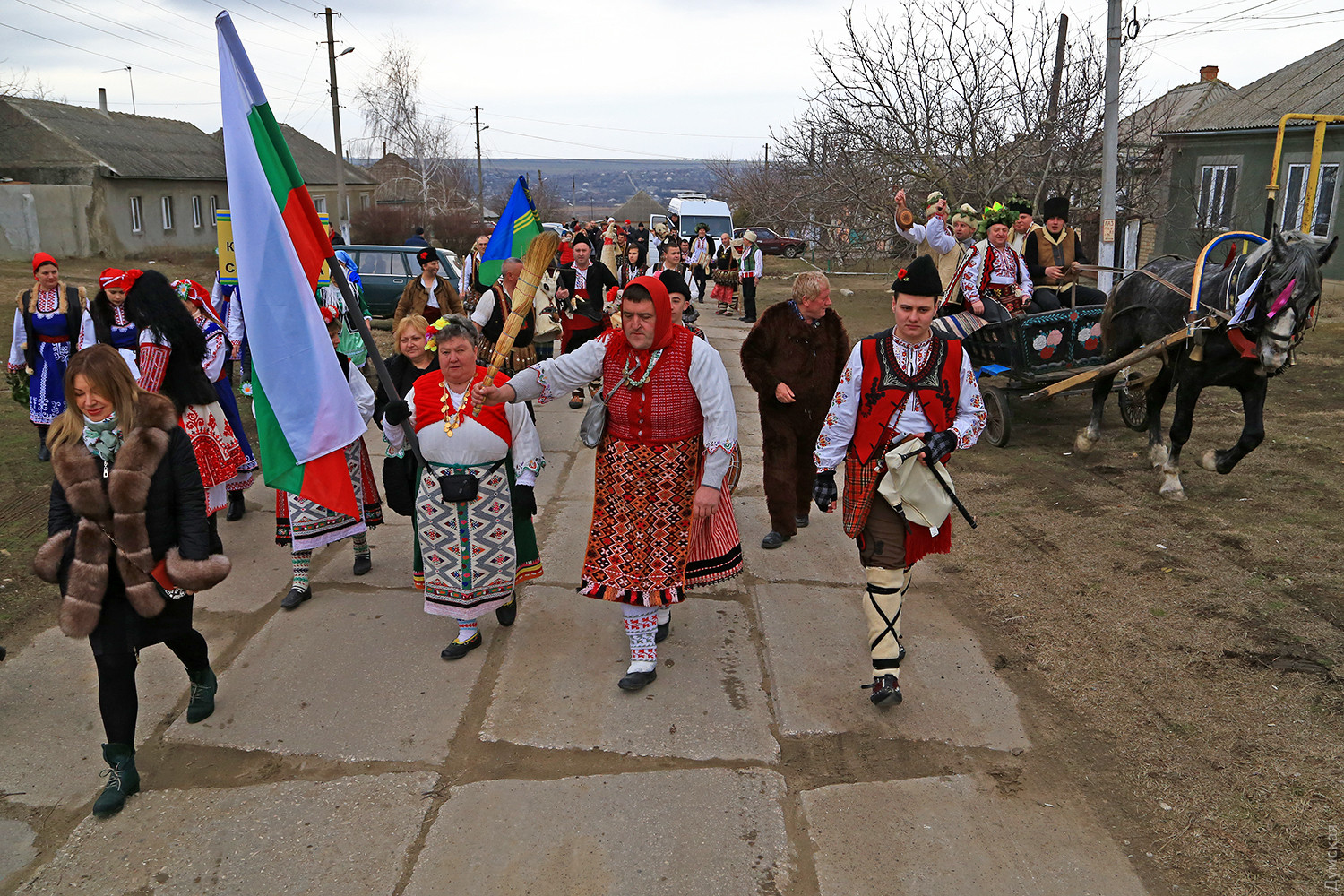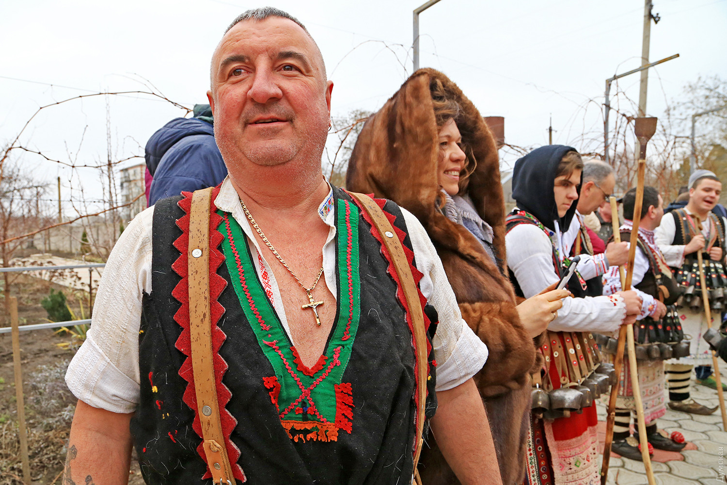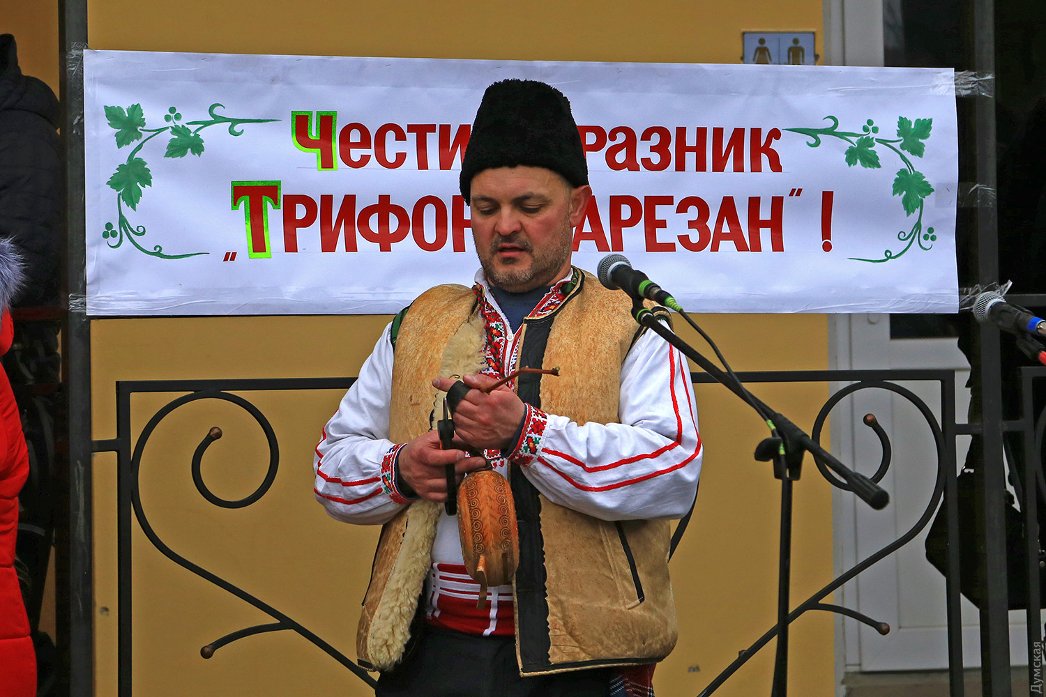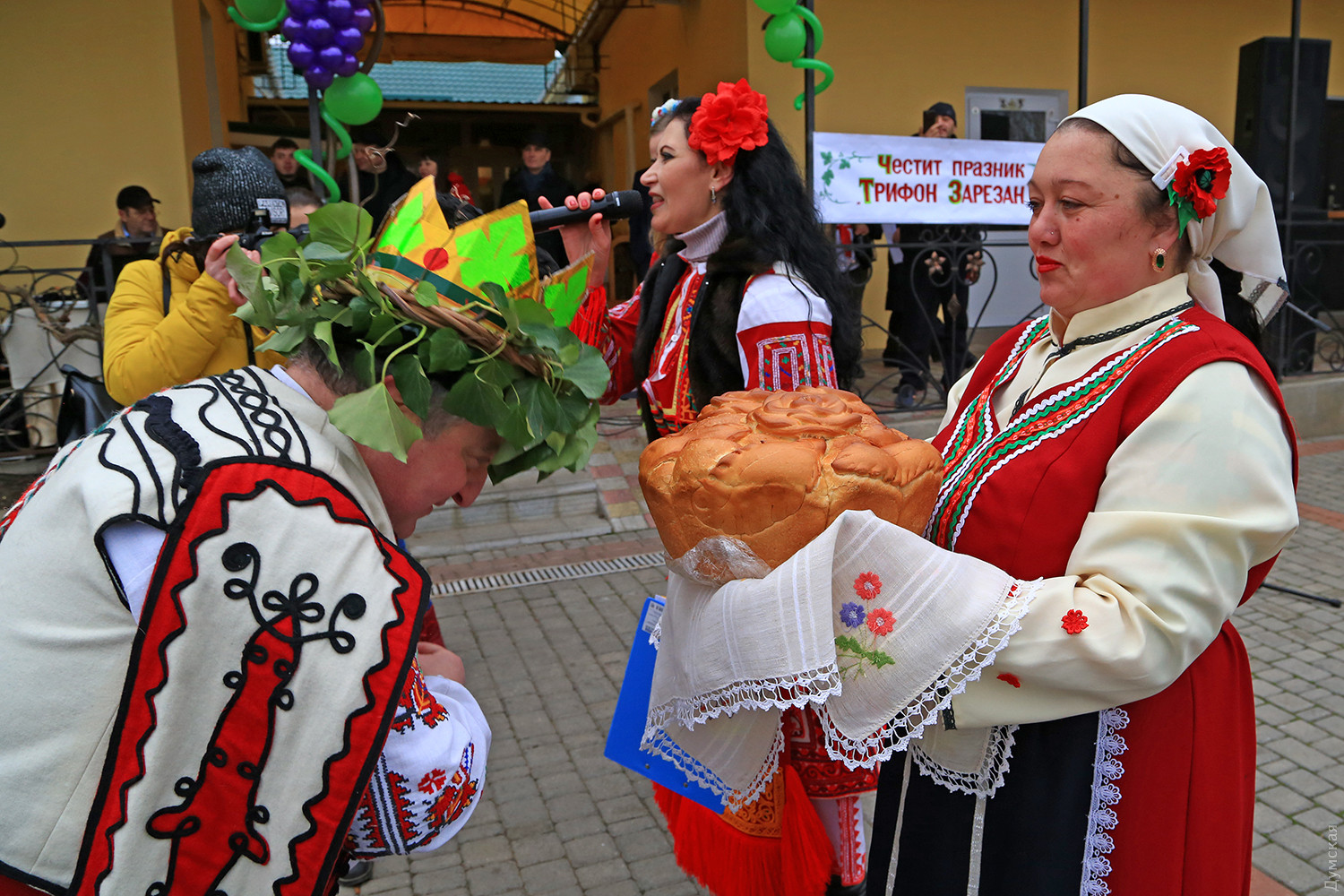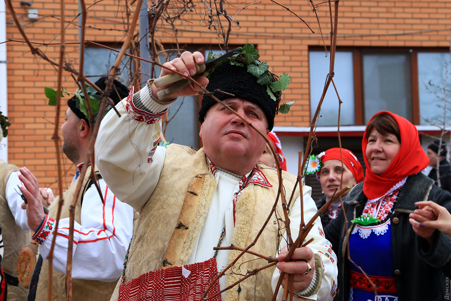 Древний винодельческий праздник обрезки лозы — Трифонов день, он же Трифон Зарезан — отмечали вчера болгары всего мира. Праздновали его и в Одесской области, чему стал свидетелем корреспондент «Думской», побывавший в столице украинских болгар — городе Болграде. Обрезка винограда необходима для правильного формирования и развития куста. Без нее становятся мельче ягоды и кисти, а бывает так, что растение и вовсе не приносит урожая. Вообще, как говорят виноградари, «виноград должен страдать»: чтобы получилась хорошая ягода, необходима бедная почва; полив такой, лишь бы не засохло; холодная зима, знойное лето, температуры на грани выживания и радикальная обрезка. Ее производят несколько раз в году. Важнейшая — февральская. Южные славяне, к которым относятся болгары, превратили этот процесс в праздник и приурочили его ко дню Святого Трифона Апамейского, который считается покровителем виноградарства. В эти несколько предвесенних деньков — 14-17 февраля — болгары, занимающиеся виноградарством и виноделием, обрезают кусты, окропляют их вином и молятся за будущий урожай. Потом можно спокойно отдохнуть, попить вина и пообщаться с соседями и друзьями. Скоро, с наступлением теплой погоды, у них уже не будет времени на отдых. В четверг погода в Болграде выдалась по-настоящему февральской — пасмурной и дождливой, — но на улицах города было шумно и весело. К центру болгарской культуры сходились горожане в национальных костюмах, с секаторами и бутылками вина в руках. Самой необычной частью праздника стал выход кукеров из Ямболской области Болгарии. Кукерами болгары называют ряженых. Другие названия — «укове», «старци», «бабугери», «бабурци», «песяци», «зибуци», «дракуси», «калугери», «камилари», «джамалари», «джумали». Обычно это холостые мужчины, которые переоблачаются в странные костюмы на Святки и Масленицу. Этот обычай, история которого насчитывает не одну тысячу лет, есть у многих европейских народов, в том числе у украинцев, но у болгар он особенно популярен. Его цель — изгнание злых духов. В Болгарии кукеры объединяются в постоянные группы, которые имеются в каждом селе и городе, а порой и на каждой улице. Некоторые выступают с гастролями, в том числе за рубежом. Представители общины Тунджа из Ямболской области — в числе лучших. Необычные маски, яркие костюмы Кстати, общий вес колокольчиков у них на поясах превышает 30 кг. При этом, чтобы они звенели, артистам надо высоко подпрыгивать. Представляете, в какой физической форме надо быть, чтобы заниматься такими упражнениями несколько часов кряду? Кукерская группа Тунджи образовалась в 1970-е годы и с тех пор постоянно выступает на региональных и международных праздниках. У нее несколько золотых медалей всеболгарских кукерских фестивалей. «Мы регулярно выезжаем за границу, в Румынию, Сербию, Турцию, Македонию и Украину. Здесь выступаем в основном в селах, расположенных возле Болграда. Группа состоит из 45 человек, но сейчас приехать в Украину смогли только пятнадцать», — рассказал руководитель коллектива Атанас Атанасов. Вот ряженые собрались в колонну, которая с музыкой и танцами двинулась по улице к первому «королю виноградников». Это еще один важный обычай Трифона Зарезана. «Королями» становятся уважаемые и зажиточные люди, которые приглашают участников праздника в свое хозяйст