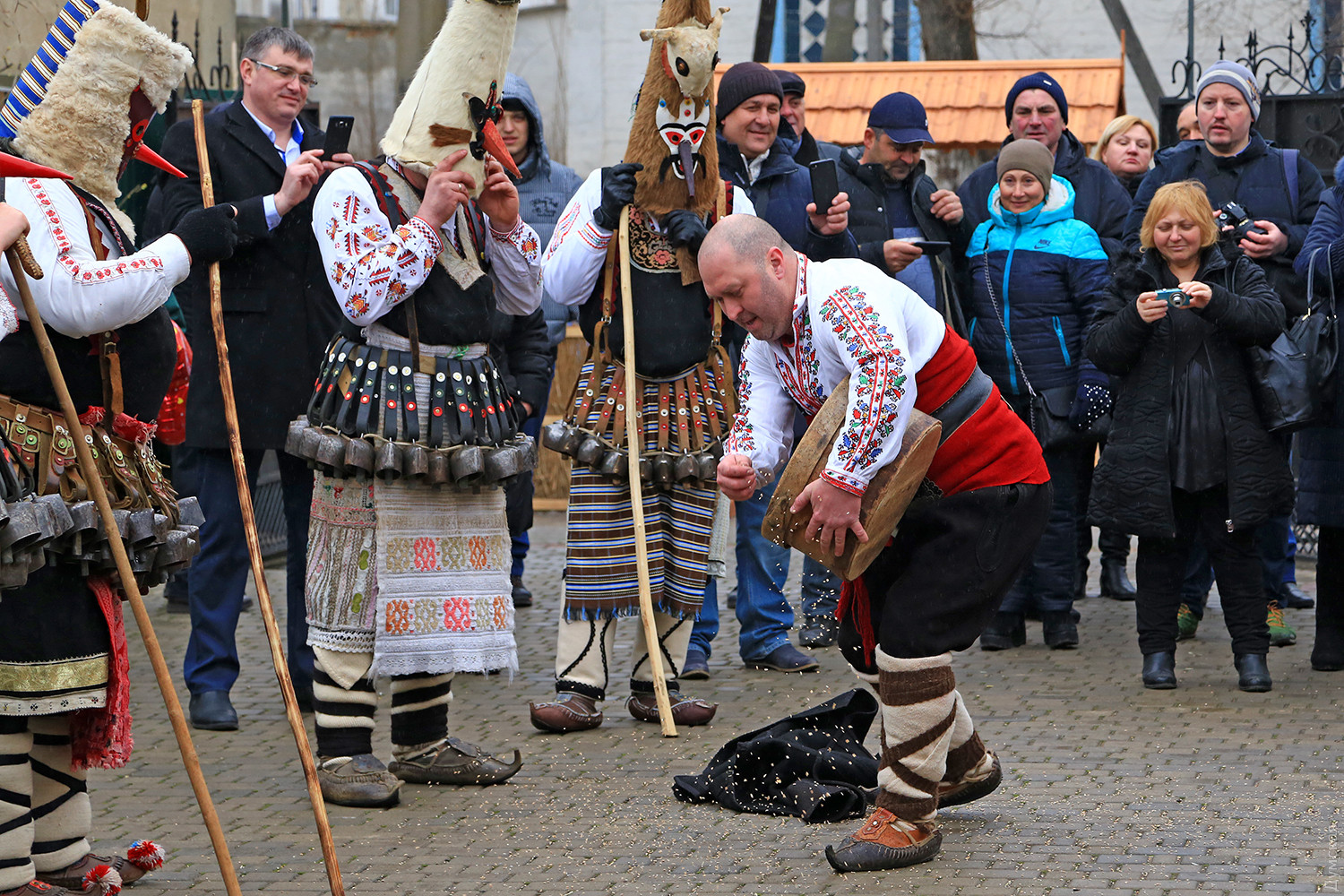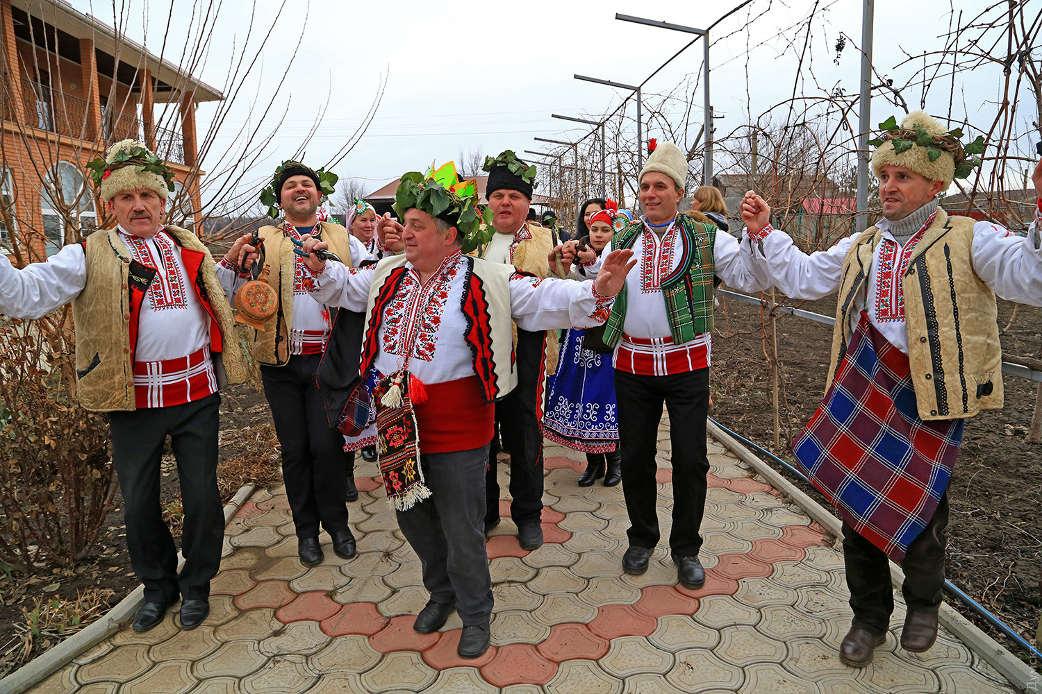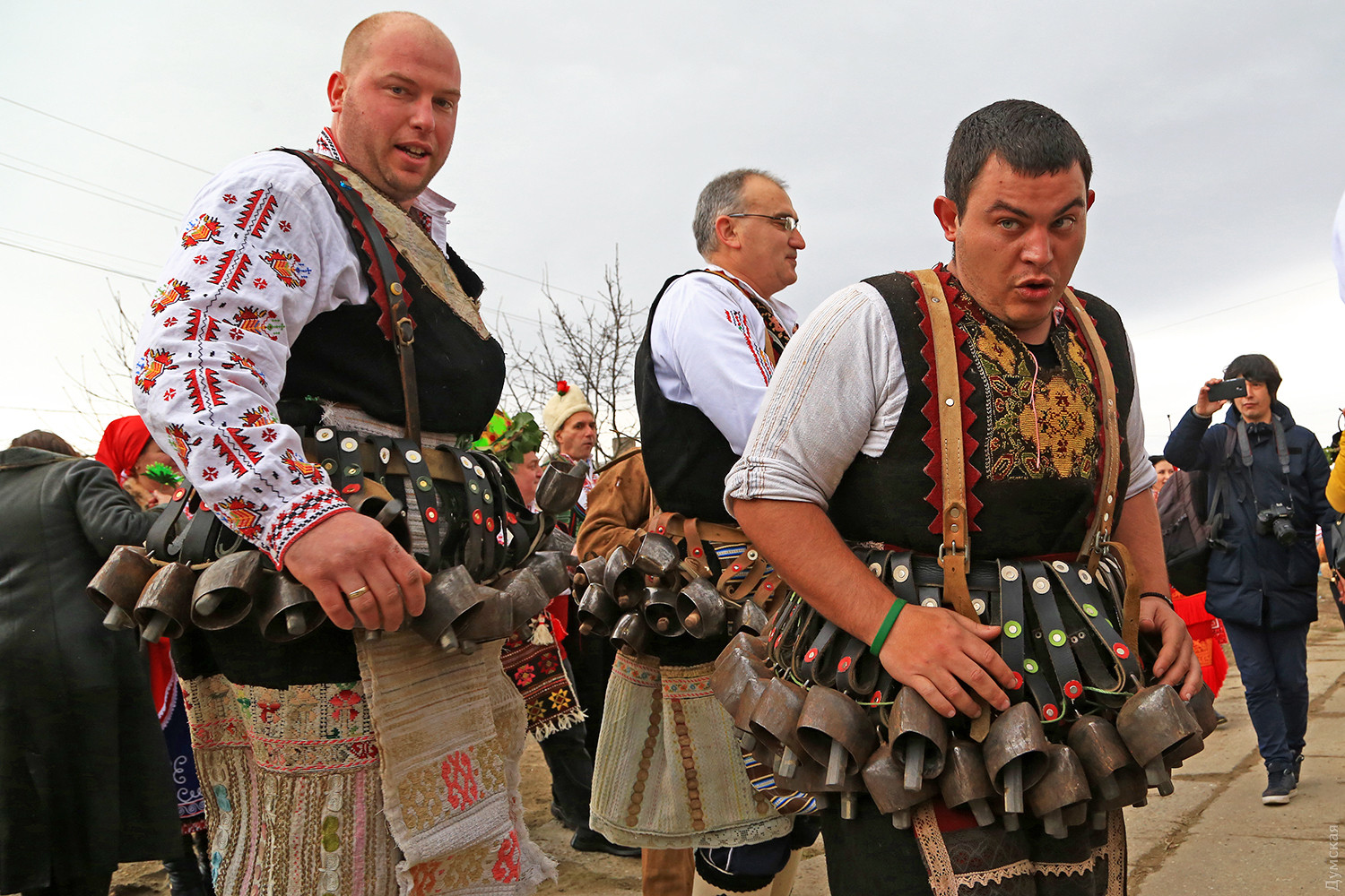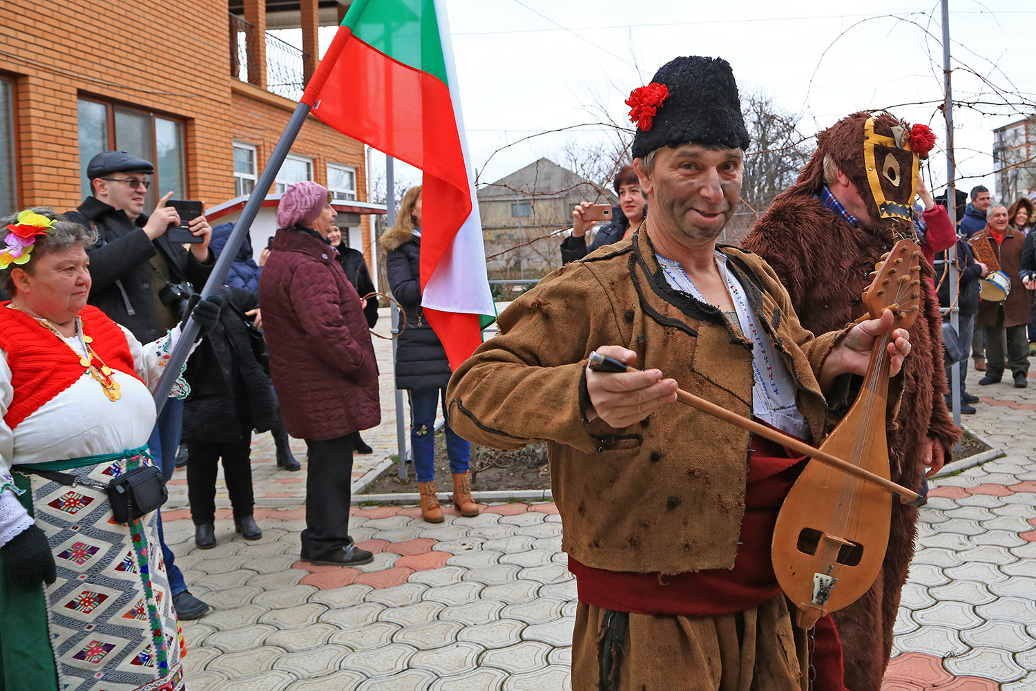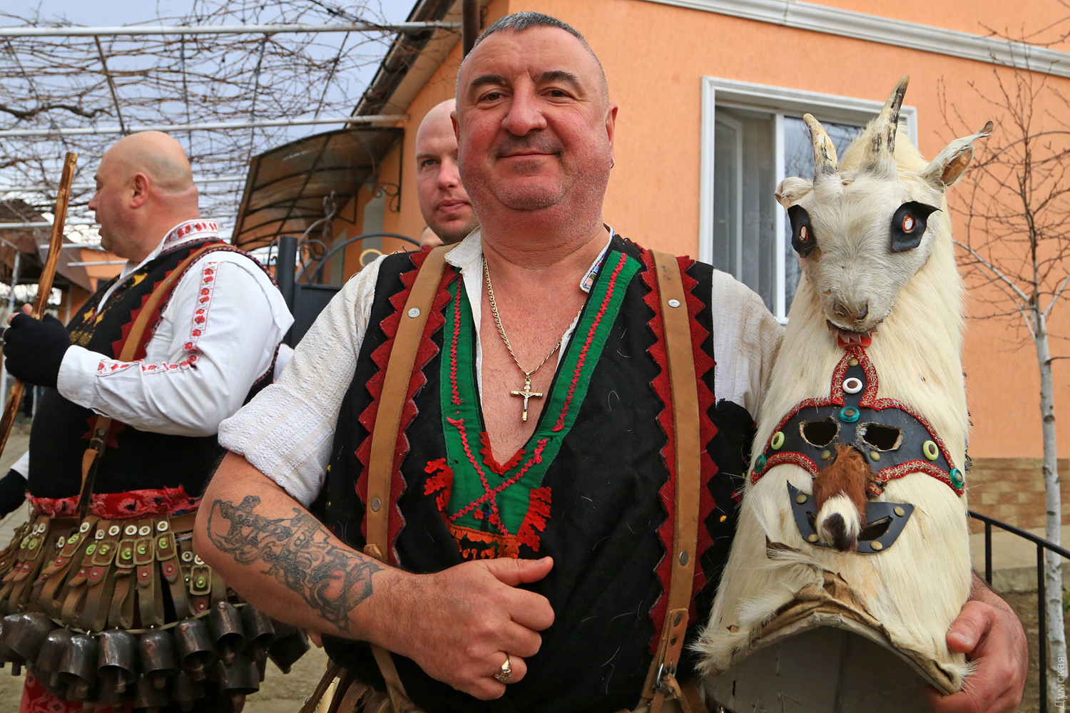 Древний винодельческий праздник обрезки лозы — Трифонов день, он же Трифон Зарезан — отмечали вчера болгары всего мира. Праздновали его и в Одесской области, чему стал свидетелем корреспондент «Думской», побывавший в столице украинских болгар — городе Болграде. Обрезка винограда необходима для правильного формирования и развития куста. Без нее становятся мельче ягоды и кисти, а бывает так, что растение и вовсе не приносит урожая. Вообще, как говорят виноградари, «виноград должен страдать»: чтобы получилась хорошая ягода, необходима бедная почва; полив такой, лишь бы не засохло; холодная зима, знойное лето, температуры на грани выживания и радикальная обрезка. Ее производят несколько раз в году. Важнейшая — февральская. Южные славяне, к которым относятся болгары, превратили этот процесс в праздник и приурочили его ко дню Святого Трифона Апамейского, который считается покровителем виноградарства. В эти несколько предвесенних деньков — 14-17 февраля — болгары, занимающиеся виноградарством и виноделием, обрезают кусты, окропляют их вином и молятся за будущий урожай. Потом можно спокойно отдохнуть, попить вина и пообщаться с соседями и друзьями. Скоро, с наступлением теплой погоды, у них уже не будет времени на отдых. В четверг погода в Болграде выдалась по-настоящему февральской — пасмурной и дождливой, — но на улицах города было шумно и весело. К центру болгарской культуры сходились горожане в национальных костюмах, с секаторами и бутылками вина в руках. Самой необычной частью праздника стал выход кукеров из Ямболской области Болгарии. Кукерами болгары называют ряженых. Другие названия — «укове», «старци», «бабугери», «бабурци», «песяци», «зибуци», «дракуси», «калугери», «камилари», «джамалари», «джумали». Обычно это холостые мужчины, которые переоблачаются в странные костюмы на Святки и Масленицу. Этот обычай, история которого насчитывает не одну тысячу лет, есть у многих европейских народов, в том числе у украинцев, но у болгар он особенно популярен. Его цель — изгнание злых духов. В Болгарии кукеры объединяются в постоянные группы, которые имеются в каждом селе и городе, а порой и на каждой улице. Некоторые выступают с гастролями, в том числе за рубежом. Представители общины Тунджа из Ямболской области — в числе лучших. Необычные маски, яркие костюмы Кстати, общий вес колокольчиков у них на поясах превышает 30 кг. При этом, чтобы они звенели, артистам надо высоко подпрыгивать. Представляете, в какой физической форме надо быть, чтобы заниматься такими упражнениями несколько часов кряду? Кукерская группа Тунджи образовалась в 1970-е годы и с тех пор постоянно выступает на региональных и международных праздниках. У нее несколько золотых медалей всеболгарских кукерских фестивалей. «Мы регулярно выезжаем за границу, в Румынию, Сербию, Турцию, Македонию и Украину. Здесь выступаем в основном в селах, расположенных возле Болграда. Группа состоит из 45 человек, но сейчас приехать в Украину смогли только пятнадцать», — рассказал руководитель коллектива Атанас Атанасов. Вот ряженые собрались в колонну, которая с музыкой и танцами двинулась по улице к первому «королю виноградников». Это еще один важный обычай Трифона Зарезана. «Королями» становятся уважаемые и зажиточные люди, которые приглашают участников праздника в свое хозяйст