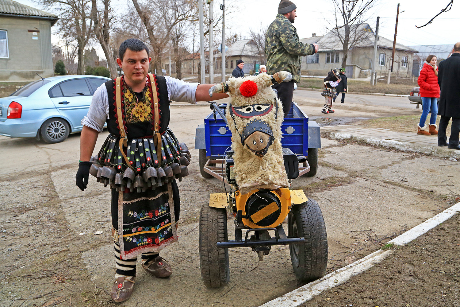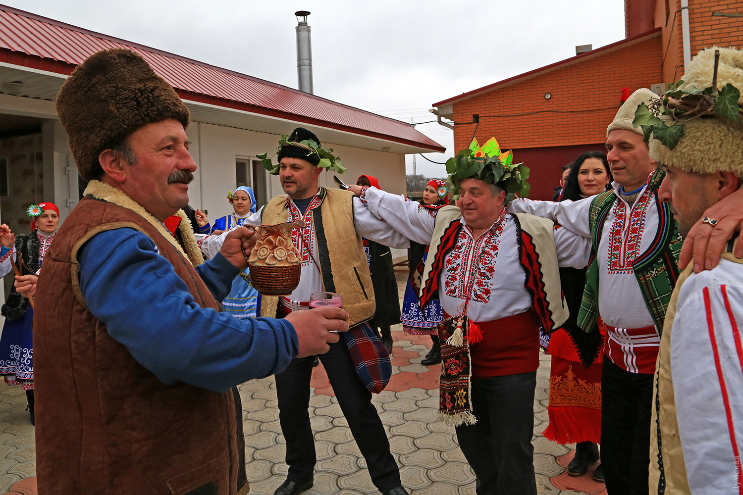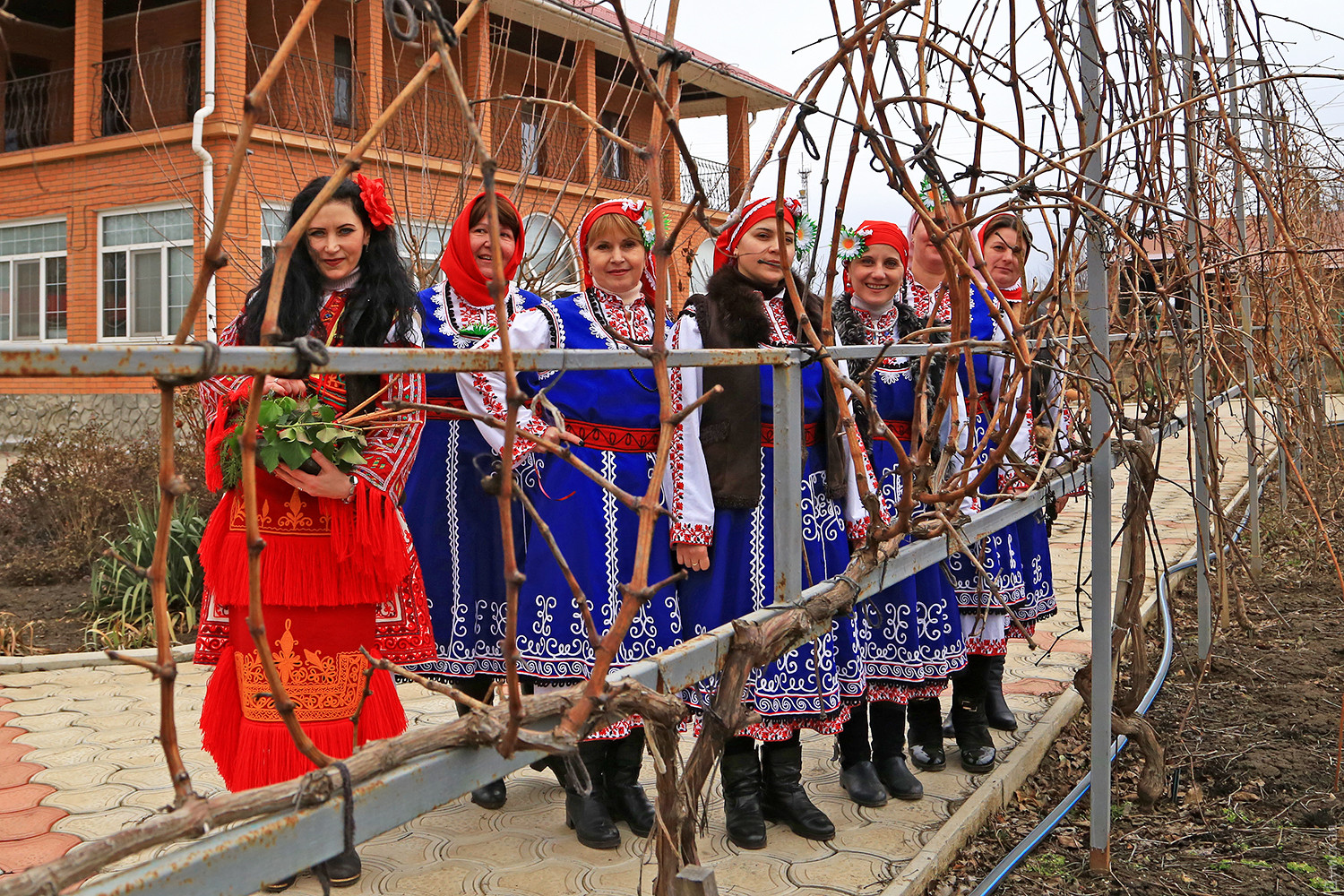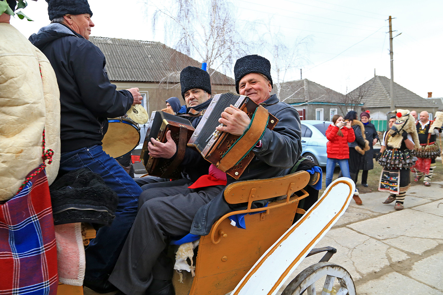 Древний винодельческий праздник обрезки лозы — Трифонов день, он же Трифон Зарезан — отмечали вчера болгары всего мира. Праздновали его и в Одесской области, чему стал свидетелем корреспондент «Думской», побывавший в столице украинских болгар — городе Болграде. Обрезка винограда необходима для правильного формирования и развития куста. Без нее становятся мельче ягоды и кисти, а бывает так, что растение и вовсе не приносит урожая. Вообще, как говорят виноградари, «виноград должен страдать»: чтобы получилась хорошая ягода, необходима бедная почва; полив такой, лишь бы не засохло; холодная зима, знойное лето, температуры на грани выживания и радикальная обрезка. Ее производят несколько раз в году. Важнейшая — февральская. Южные славяне, к которым относятся болгары, превратили этот процесс в праздник и приурочили его ко дню Святого Трифона Апамейского, который считается покровителем виноградарства. В эти несколько предвесенних деньков — 14-17 февраля — болгары, занимающиеся виноградарством и виноделием, обрезают кусты, окропляют их вином и молятся за будущий урожай. Потом можно спокойно отдохнуть, попить вина и пообщаться с соседями и друзьями. Скоро, с наступлением теплой погоды, у них уже не будет времени на отдых. В четверг погода в Болграде выдалась по-настоящему февральской — пасмурной и дождливой, — но на улицах города было шумно и весело. К центру болгарской культуры сходились горожане в национальных костюмах, с секаторами и бутылками вина в руках. Самой необычной частью праздника стал выход кукеров из Ямболской области Болгарии. Кукерами болгары называют ряженых. Другие названия — «укове», «старци», «бабугери», «бабурци», «песяци», «зибуци», «дракуси», «калугери», «камилари», «джамалари», «джумали». Обычно это холостые мужчины, которые переоблачаются в странные костюмы на Святки и Масленицу. Этот обычай, история которого насчитывает не одну тысячу лет, есть у многих европейских народов, в том числе у украинцев, но у болгар он особенно популярен. Его цель — изгнание злых духов. В Болгарии кукеры объединяются в постоянные группы, которые имеются в каждом селе и городе, а порой и на каждой улице. Некоторые выступают с гастролями, в том числе за рубежом. Представители общины Тунджа из Ямболской области — в числе лучших. Необычные маски, яркие костюмы Кстати, общий вес колокольчиков у них на поясах превышает 30 кг. При этом, чтобы они звенели, артистам надо высоко подпрыгивать. Представляете, в какой физической форме надо быть, чтобы заниматься такими упражнениями несколько часов кряду? Кукерская группа Тунджи образовалась в 1970-е годы и с тех пор постоянно выступает на региональных и международных праздниках. У нее несколько золотых медалей всеболгарских кукерских фестивалей. «Мы регулярно выезжаем за границу, в Румынию, Сербию, Турцию, Македонию и Украину. Здесь выступаем в основном в селах, расположенных возле Болграда. Группа состоит из 45 человек, но сейчас приехать в Украину смогли только пятнадцать», — рассказал руководитель коллектива Атанас Атанасов. Вот ряженые собрались в колонну, которая с музыкой и танцами двинулась по улице к первому «королю виноградников». Это еще один важный обычай Трифона Зарезана. «Королями» становятся уважаемые и зажиточные люди, которые приглашают участников праздника в свое хозяйст