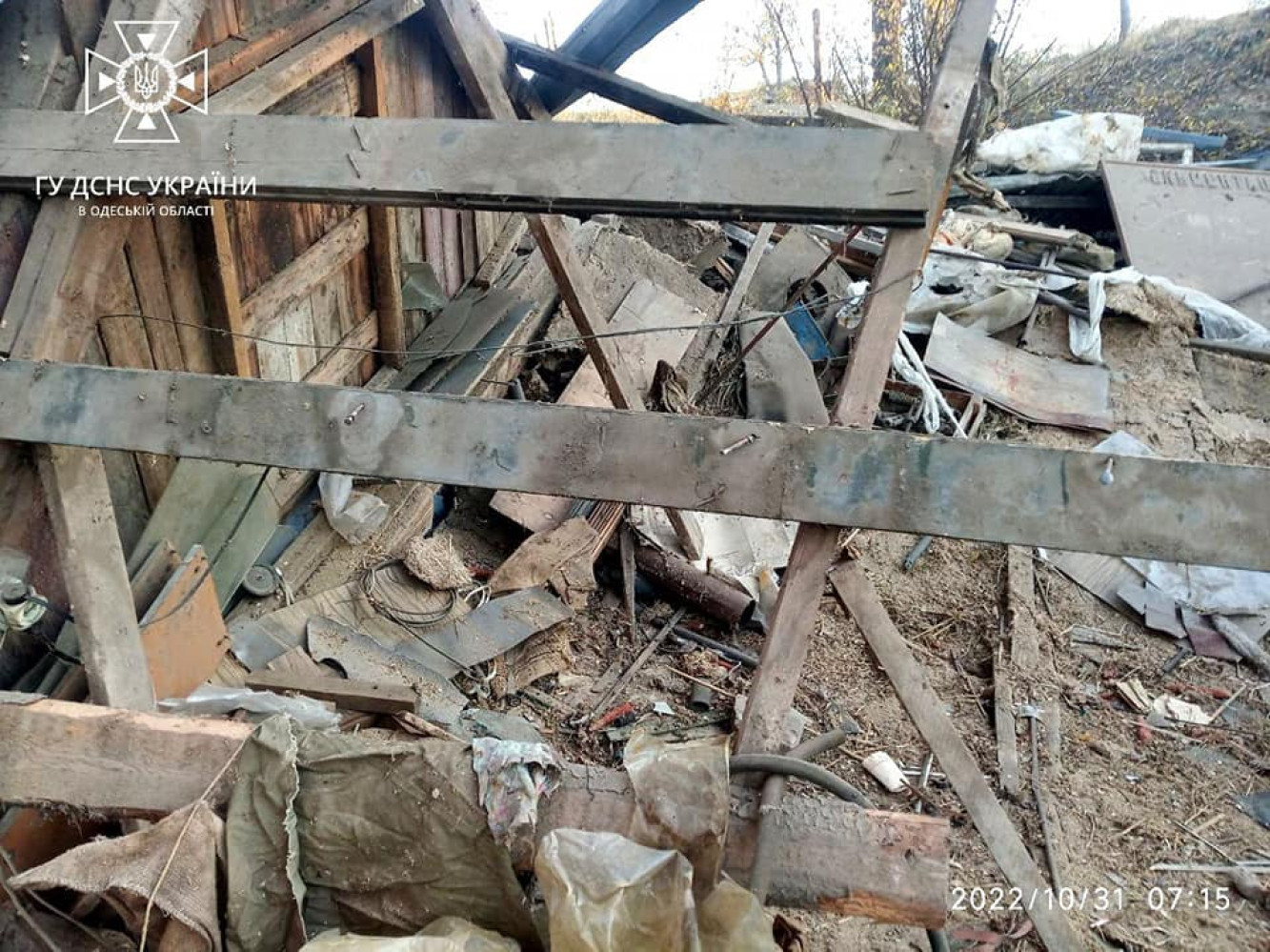 Як повідомили в пресслужбі облДСНС, рятувальники, що прибули за викликом, встановили руйнування даху внаслідок вибуху газоповітряної суміші. Уламки даху обвалилися в середину надвірної споруди.
