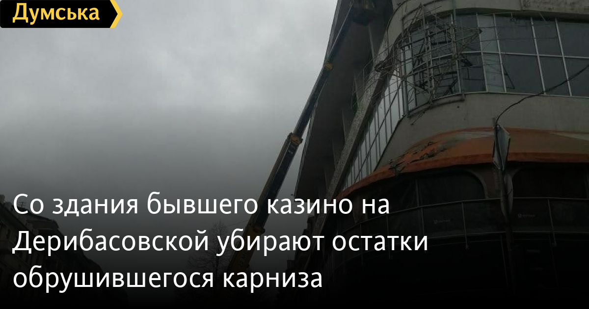 Со здания бывшего казино на Дерибасовской убирают остатки обрушившегося карнизаСобственник здания бывшего ресторана на углу Дерибасовской и Екатерининской улиц, где вчера вечером произошло обрушение фасада, приступил к ликвидации аварийных элементов карниза. Об этом сообщил департамент городского хозяйства Одессы. Напомним, куски карниза обвалились с фасада углового трехэтажного здания, расположенного по адресу Дерибасовская,15/ Екатерининская, 19 вечером 12 апреля. В результате происшествия никто не пострадал. В то же время обломки задели припаркованные рядом машины. Напомним, в этом здании на третьем этаже раньше функционировало казино. Причем, работало оно даже тогда, когда существовал запрет игорного бизнеса. Подпольное казино несколько раз пытались закрывать — одна из таких попыток завершилась кровавой дракой. Покер-клуб WIN работал по адресу Дерибасовская, 15, почти не таясь, до мая 2020 года, пока СБУ не прикрыла его. СМЕРТЬ РОССИЙСКИМ ОККУПАНТАМ! Заметили ошибку? Выделяйте слова с ошибкой и нажимайте control-enter |