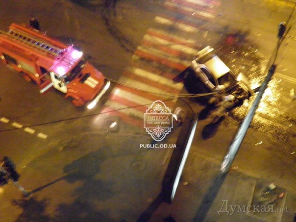 Автомобиль марки «Chevrolet Aveo» сгорел в результате ДТП, произошедшего ранним утром на пересечении улиц Успенской и Осипова. Как сообщают в паблике «Одесса как она есть», в результате ДТП у машины загорелся двигатель.