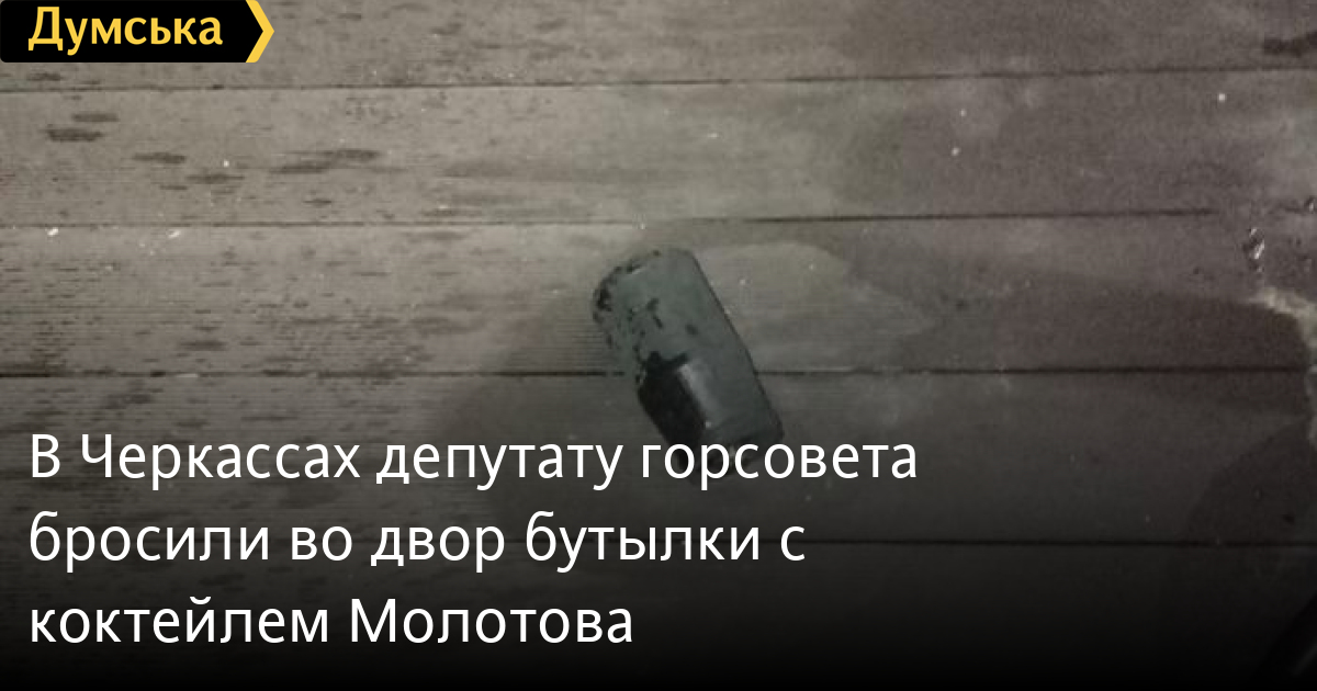 Несколько бутылок с легковоспламеняющейся жидкостью подбросили неизвестные к дому депутата городского совета в Черкассах. Об этом сообщила пресс-служба Нацполиции в Черкасской области. По данным правоохранителей, емкости лежали во дворе. Депутат заметил подозрительные предметы около часу ночи, после чего позвонил в полицию. Как уточнили оперативники, от «коктейля Молотова» никто не успел пострадать. Было открыто уголовное дело об умышленном уничтожении или повреждении имущества. Устанавливается круг лиц, которые могли быть причастны к инциденту, проводятся розыскные мероприятия. Вещественные доказательства забрали с места происшествия. Следствие продолжается. Полиция не называет имени политика, которому подбросили горючее вещество. В то же время ряд черкасских СМИ написал, что речь идет о депутате местного горсовета Алексее Мельнике. СМЕРТЬ РОССИЙСКИМ ОККУПАНТАМ! Заметили ошибку? Выделяйте слова с ошибкой и нажимайте control-enter Новости по этой теме: 12 января 2022: Харьковские станции метро ожидает масштабная проверка: в вестибюле подземки на площади Конституции рухнул потолок (фото) 8 января 2022: В Одессе из офиса фирмы выкрали сейф с внушительной суммой денег, золотом и пистолетом 27 декабря 2021: В лесополосе под Киевом нашли тело главврача из Ровенской области: по подозрению в убийстве задержаны таксист с приятелем 23 декабря 2021: В Киеве задержали подозреваемых мошенников, которые обманывали на свиданиях мужчин ради денег |
