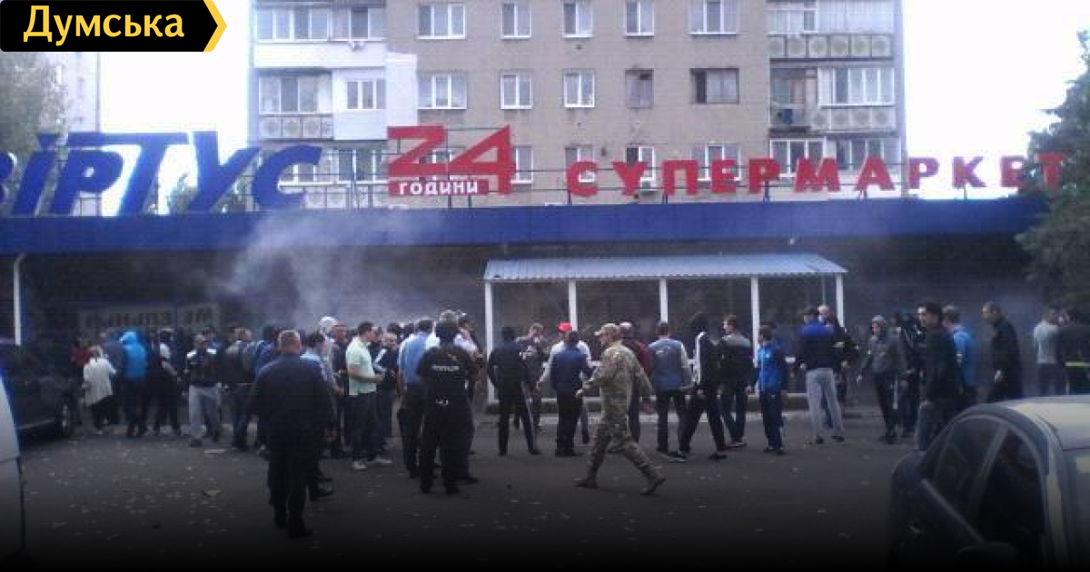 Сегодня утром в Черноморске неизвестные разгромили и захватили магазин «Виртус». По словам очевидцев, несколько человек спортивного телосложения закрылись в магазине, предварительно выгнав оттуда сотрудников. Прибывшая на место полиция вела переговоры с захватчиками, но безрезультатно. По свидетельствам очевидцев, около полудня правоохранители решили взять здание штурмом, используя дымовые шашки и предупредительную стрельбу.