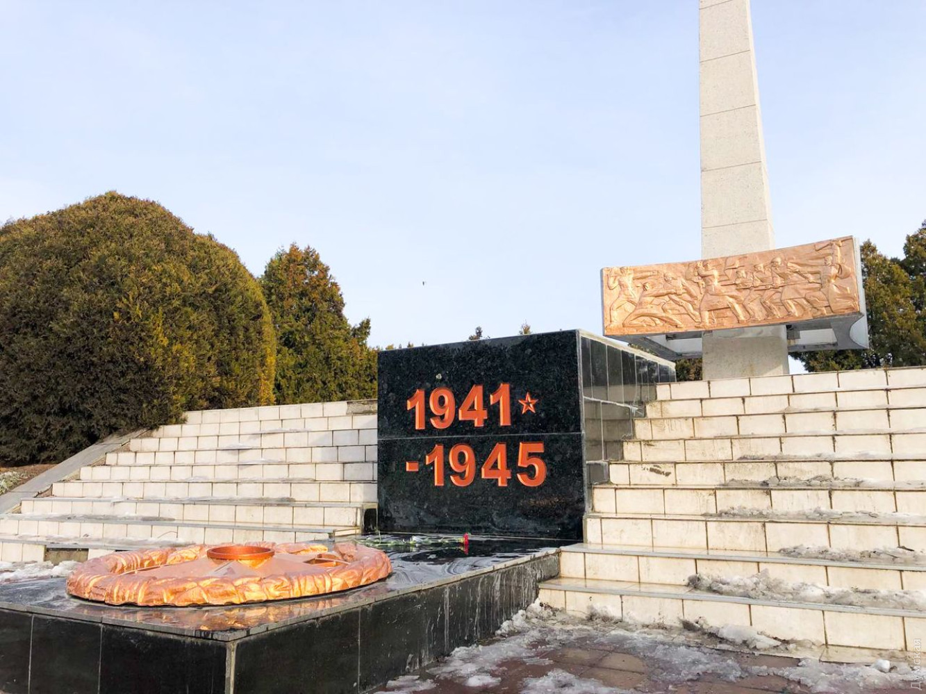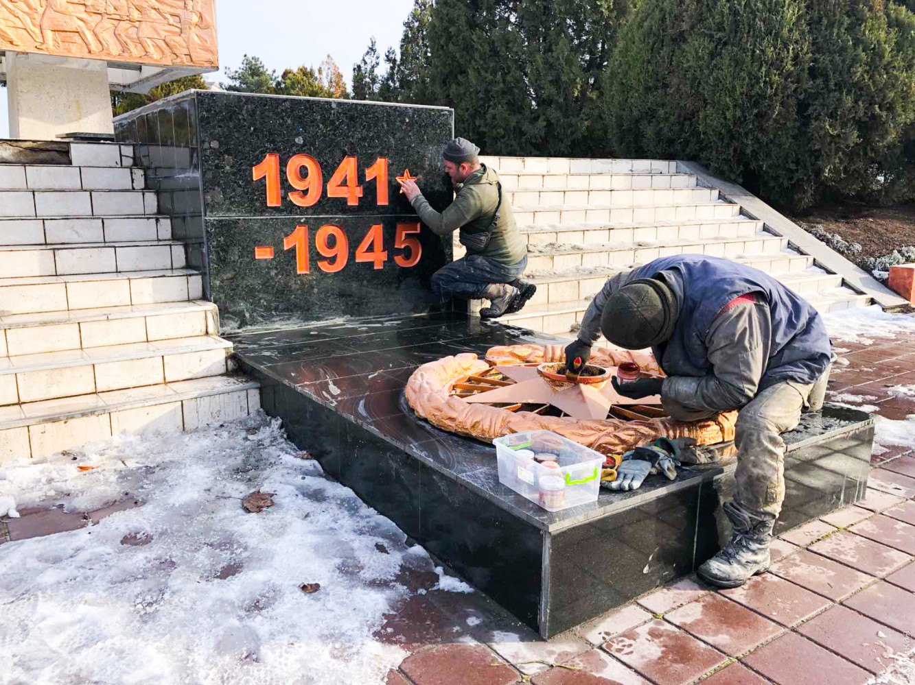 Коммунальщики восстановили цифры 1941 на Обелиске Славы в Черноморске.