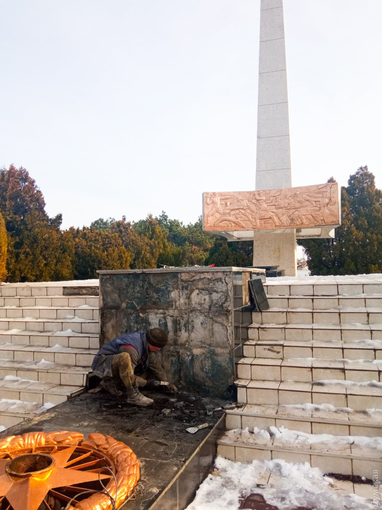 В Черноморске отремонтировали поврежденный вандалами Обелиск Славы