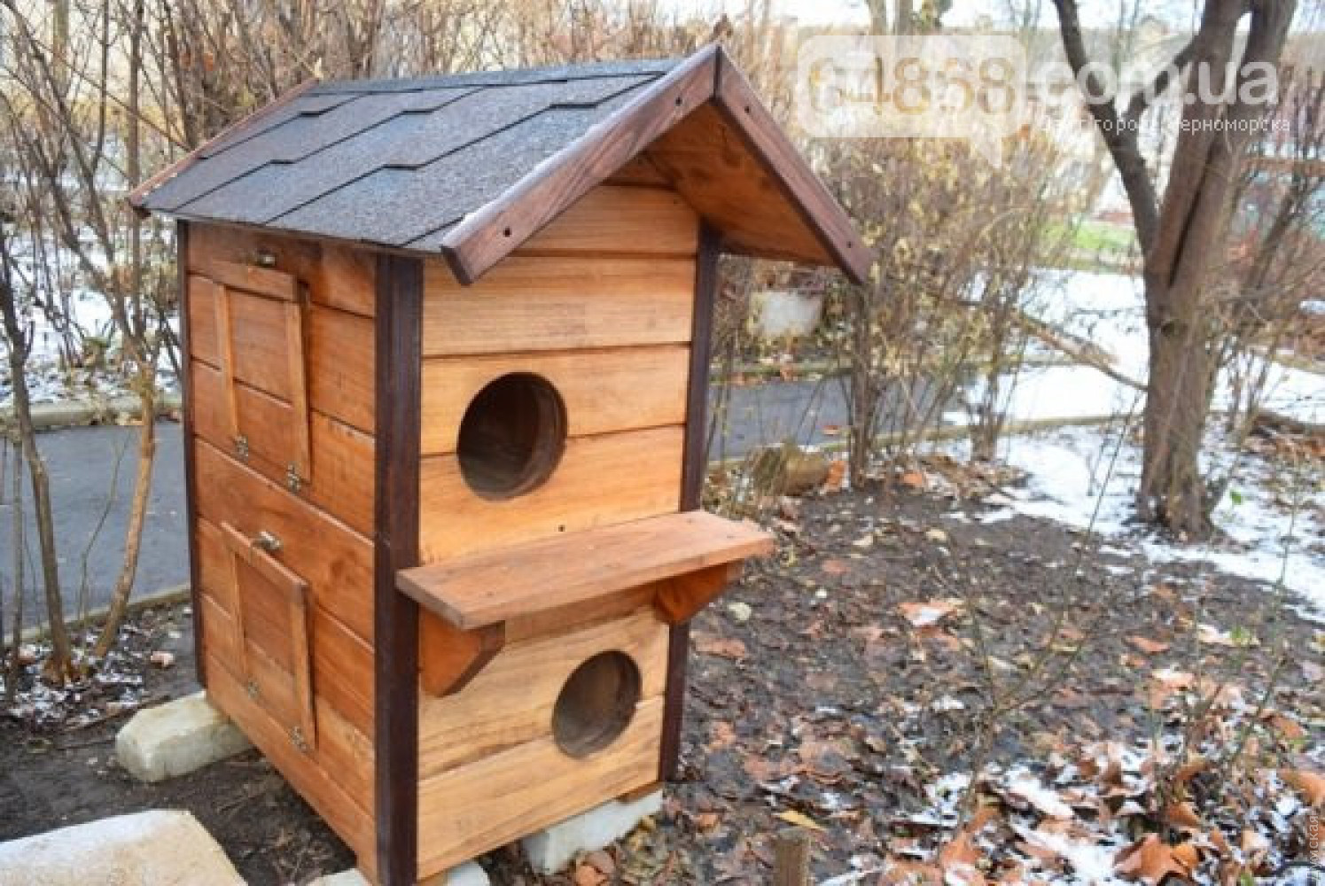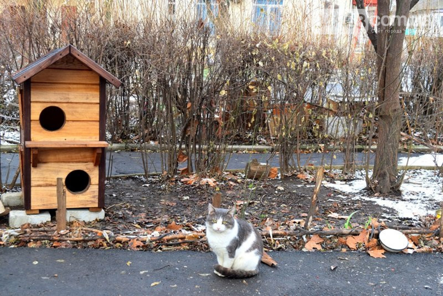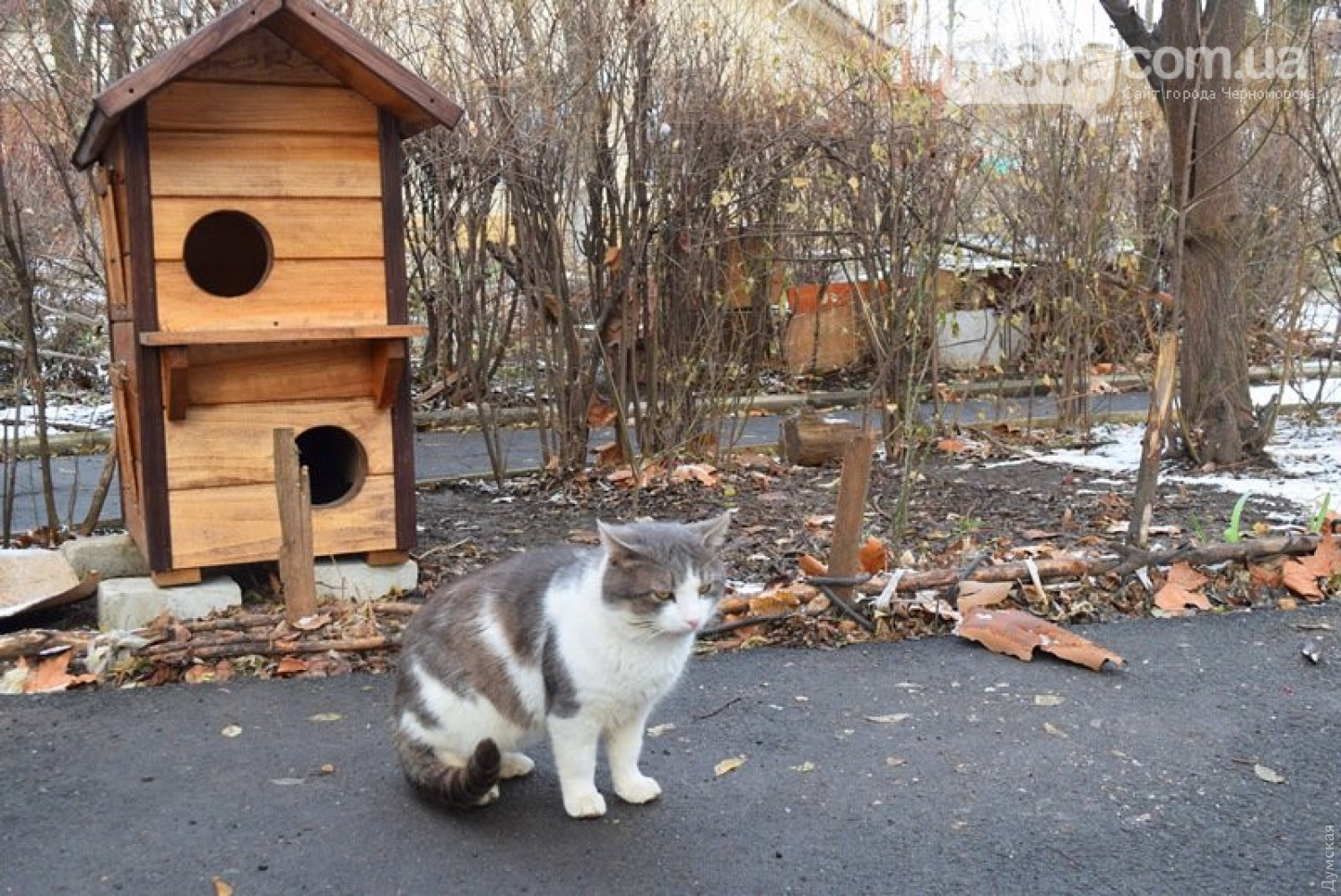 Вслед за одесскими котопунктами домики для кошек появились и в Черноморске. Один из таких двухэтажных «коттеджей» установили во дворах пятиэтажек на улице Хантадзе.