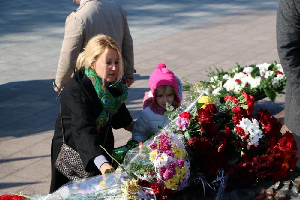 К подножию памятника возложили десятки букетов в память о тех, кто ценой своей жизни защитил родную землю.