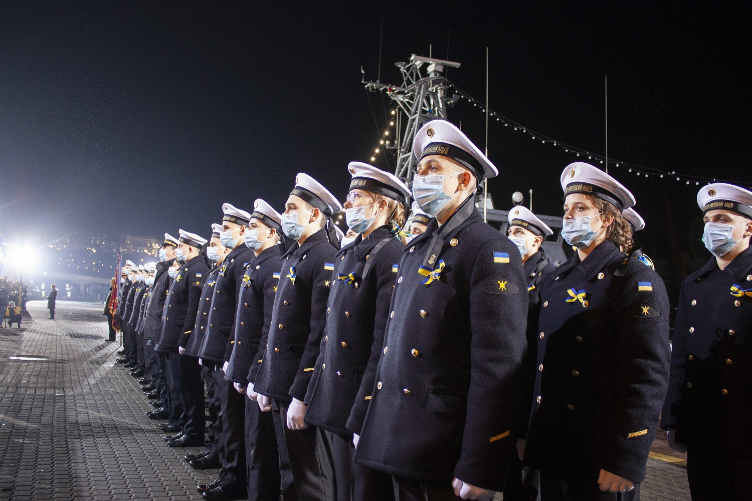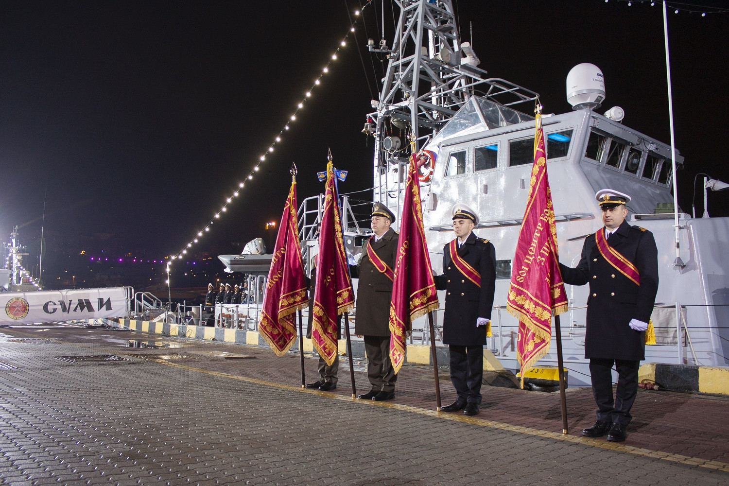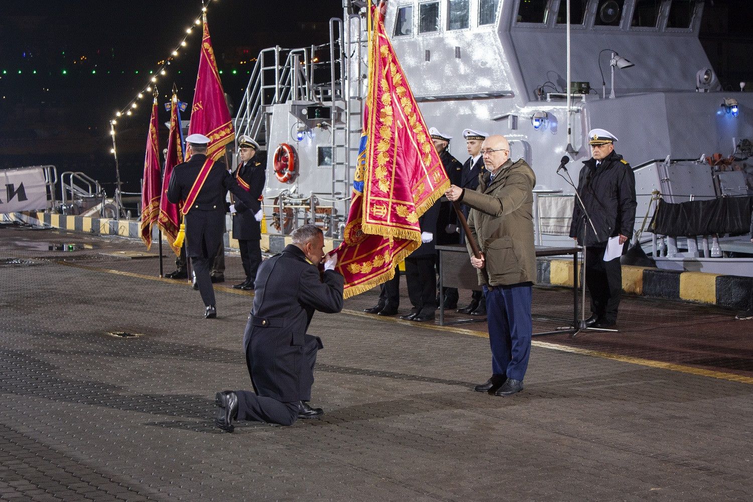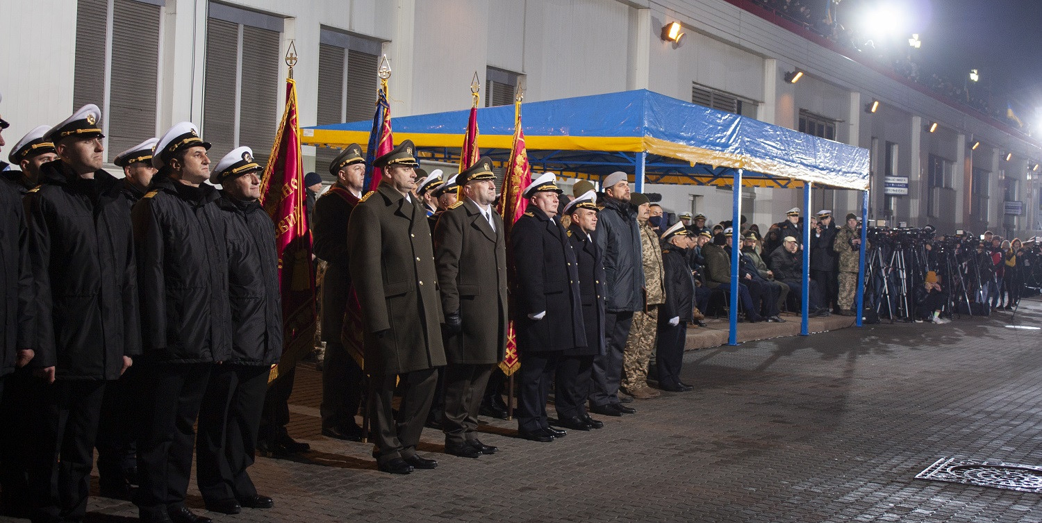 Вечером 6 декабря в Одессе на причале Морского вокзала состоялись торжественные мероприятия по случаю 30-й годовщины Дня Вооруженных сил Украины при участии министра обороны Алексея Резникова, городского головы Одессы Геннадия Труханова, главы ОГА Сергея Гриневецкого, главы Одесского облсовета Григория Диденко и его первого заместителя Олега Радковского. Мероприятие в Одессе проходило параллельно с празднованиями и в других городах страны. Военнослужащие ВМС Украины, морской пехоты и сухопутных частей, дислоцированных в Одессе, приняли участие в онлайн-церемонии, объединившей Харьков, Киев, Львов, Житомир (аэродром Озерное) и Краматорск. Министр обороны Алексей Резников вручил военно-морские флаги и сертификаты командирам катеров «Фастов» и «Сумы», а также вручил боевые ордена и медали особо отличившимся военным. Новые патрульные катера типа Island «Сумы» и «Фастов», прибывшие в Одессу из США 23 ноября, торжественно приняли в состав Военно-морских сил Украины. Кроме того, новые боевые знамена в Одессе получили 801-й отдельный отряд борьбы с подводными диверсионными силами и средствами ВМСУ, 37-й отдельный полк связи флота, 194-й понтонно-мостовой полк Государственной специальной службы транспорта и 26-я отдельная бригада ГССТУ. Последней присвоили почетное наименование «Днепровская». Также, по ставшей уже традицией, в этот вечер на морвокзале сложили клятву молодые курсанты-моряки. СМЕРТЬ РОСІЙСЬКИМ ОКУПАНТАМ! Помітили помилку? Виділяйте слова з помилкою та натискайте control-enter |