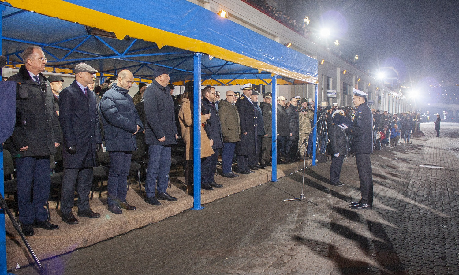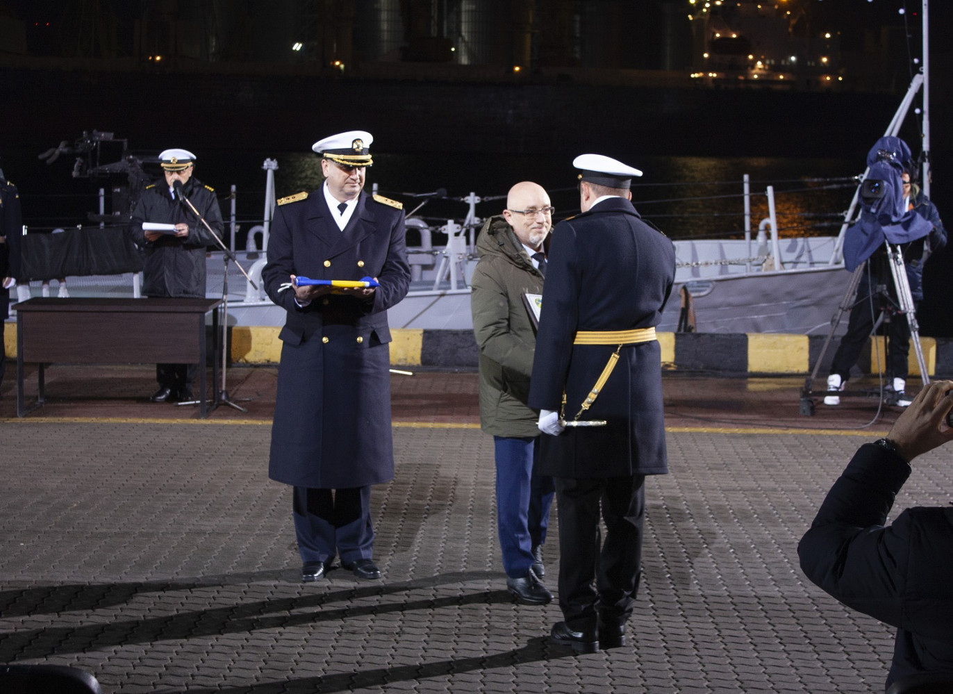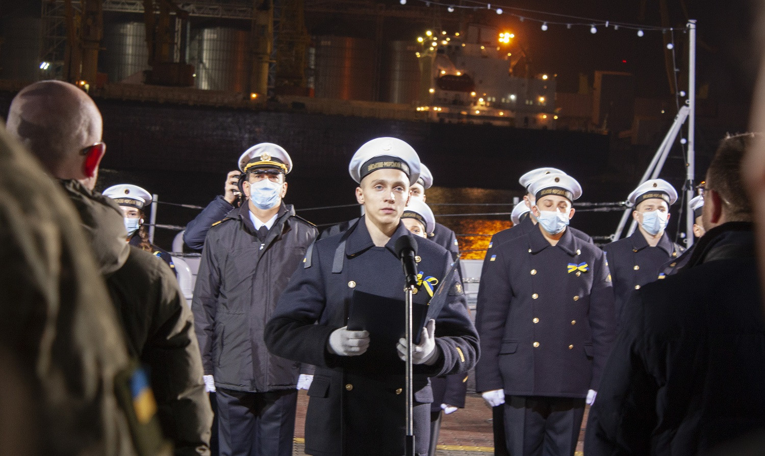 Вечером 6 декабря в Одессе на причале Морского вокзала состоялись торжественные мероприятия по случаю 30-й годовщины Дня Вооруженных сил Украины при участии министра обороны Алексея Резникова, городского головы Одессы Геннадия Труханова, главы ОГА Сергея Гриневецкого, главы Одесского облсовета Григория Диденко и его первого заместителя Олега Радковского. Мероприятие в Одессе проходило параллельно с празднованиями и в других городах страны. Военнослужащие ВМС Украины, морской пехоты и сухопутных частей, дислоцированных в Одессе, приняли участие в онлайн-церемонии, объединившей Харьков, Киев, Львов, Житомир (аэродром Озерное) и Краматорск. Министр обороны Алексей Резников вручил военно-морские флаги и сертификаты командирам катеров «Фастов» и «Сумы», а также вручил боевые ордена и медали особо отличившимся военным. Новые патрульные катера типа Island «Сумы» и «Фастов», прибывшие в Одессу из США 23 ноября, торжественно приняли в состав Военно-морских сил Украины. Кроме того, новые боевые знамена в Одессе получили 801-й отдельный отряд борьбы с подводными диверсионными силами и средствами ВМСУ, 37-й отдельный полк связи флота, 194-й понтонно-мостовой полк Государственной специальной службы транспорта и 26-я отдельная бригада ГССТУ. Последней присвоили почетное наименование «Днепровская». Также, по ставшей уже традицией, в этот вечер на морвокзале сложили клятву молодые курсанты-моряки. СМЕРТЬ РОСІЙСЬКИМ ОКУПАНТАМ! Помітили помилку? Виділяйте слова з помилкою та натискайте control-enter |
