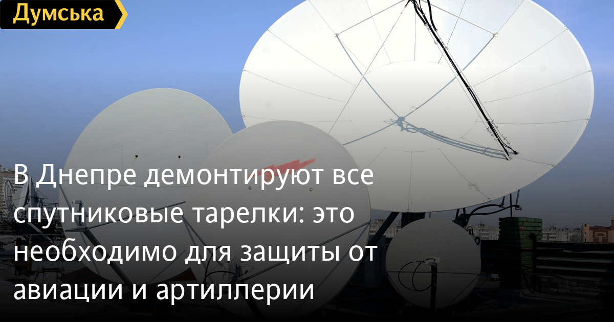 В Днепре демонтируют все спутниковые тарелки: это необходимо для защиты от авиации и артиллерииВ Днепре до 28 марта планируют снять спутниковые тарелки со всех зданий. Об этом на своей странице в Facebook сообщил вице-мер Михаил Лысенко. Жителям, в первую очередь многоквартирных домов, до 28 марта нужно убрать все свои спутниковые антенны с фасадов и кровель. Это обусловлено необходимостью и в первую очередь защиты горожан, утверждает Лысенко. «Я не хочу углубляться в вопросы работы вражеской авиации и артиллерии. Просто всем нужно это сделать», — написал на своей странице заместитель Днепровского городского головы. Все антенны, не снятые самостоятельно, будут демонтированы коммунальными предприятиями и возвращены собственникам после окончания войны. «Я сегодня долго общался с моими коллегами из разных городов. Они делились своими какими-то ошибками и просчетами. Учиться надо на чужих ошибках. Нам в Днепре не нужны ошибки Харькова и Мариуполя», — сообщил Лысенко. СМЕРТЬ РОСІЙСЬКИМ ОКУПАНТАМ! Помітили помилку? Виділяйте слова з помилкою та натискайте control-enter |