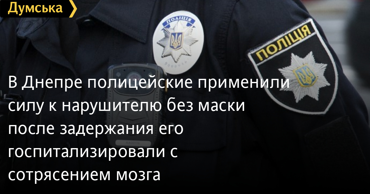 В Днепре полицейские применили силу к нарушителю без маски – после задержания его госпитализировали с сотрясением мозгаНа автовокзале в Днепре парню, нарушившему карантин, стало плохо в результате задержания оперативниками с применением физической силы. Об этом сообщает УНН со ссылкой на полицию Днепропетровской области. Как стало известно, полицейские патрулировали район вокзала и заметили горожанина, не надевшего маску в общественном месте. Они сделали молодому человеку замечание, но он не отреагировал. Как отметили агентству новостей в полиции, парень не обращал внимание на слова правоохранителей и продолжал идти по своим делам без средства защиты. В результате оперативники задержали его, применив физическую силу. Самочувствие молодого человека резко ухудшилось, после чего полицейские сами же вызвали ему скорую. По предварительным данным СМИ, пострадавшего госпитализировали с предположительным диагнозом «сотрясение мозга». Также добавляется, что нарушитель карантина страдает астмой и, видимо, поэтому не захотел надеть маску. Инцидент расследуется. Назначена служебная проверка, после которой действиям полицейских дадут правовую оценку. СМЕРТЬ РОССИЙСКИМ ОККУПАНТАМ! Заметили ошибку? Выделяйте слова с ошибкой и нажимайте control-enter Новости по этой теме: 12 января 2022: Харьковские станции метро ожидает масштабная проверка: в вестибюле подземки на площади Конституции рухнул потолок (фото) 8 января 2022: В Одессе из офиса фирмы выкрали сейф с внушительной суммой денег, золотом и пистолетом 27 декабря 2021: В лесополосе под Киевом нашли тело главврача из Ровенской области: по подозрению в убийстве задержаны таксист с приятелем 23 декабря 2021: В Киеве задержали подозреваемых мошенников, которые обманывали на свиданиях мужчин ради денег |