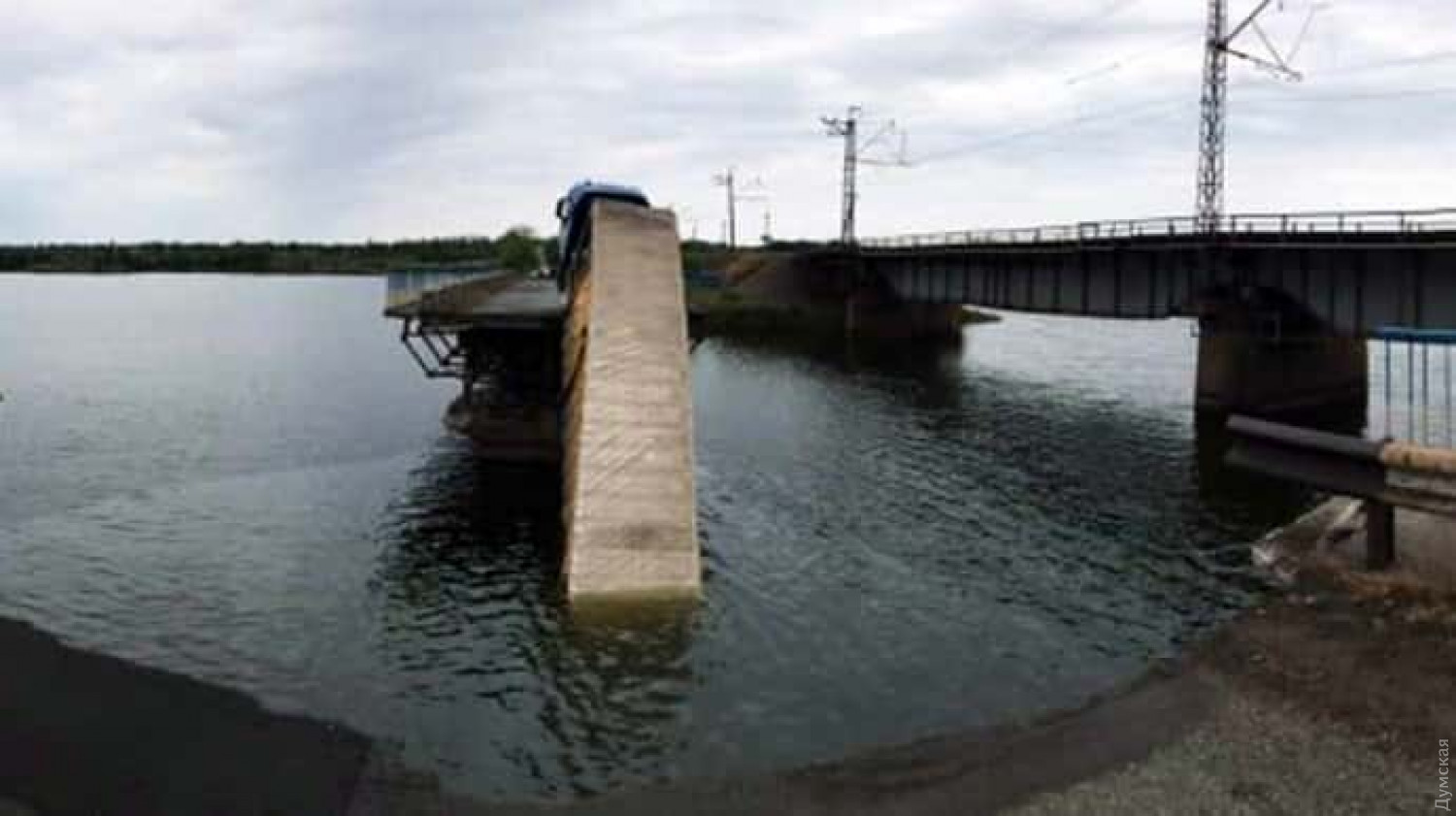Днем 20 мая в селе Алексеевка Никопольского района Днепропетровской области обрушилась секция автомобильного моста через Алексеевский залив Каховского водохранилища. Об этом сообщила пресс-служба Национальной полиции Украины. Инцидент случился в тот момент, когда по мосту двигался грузовой автомобиль Iveco. В МВД отметили, что в результате происшествия погибших и пострадавших нет. Представители ГСЧС установили, что мост является частью трассы Н-23 «Кропивницкий – Запорожье». Его длина составляет 120 м, а высота – пять метров. Длина одной секции – 20 метров, всего конструкция состоит из шести секций. Владельцем сооружения является Служба автомобильных дорог в Днепропетровской области. Сейчас на месте работают представители служб. Решается вопрос о привлечении специализированной техники. Причины разрушения моста устанавливаются. СМЕРТЬ РОССИЙСКИМ ОККУПАНТАМ! Заметили ошибку? Выделяйте слова с ошибкой и нажимайте control-enter |