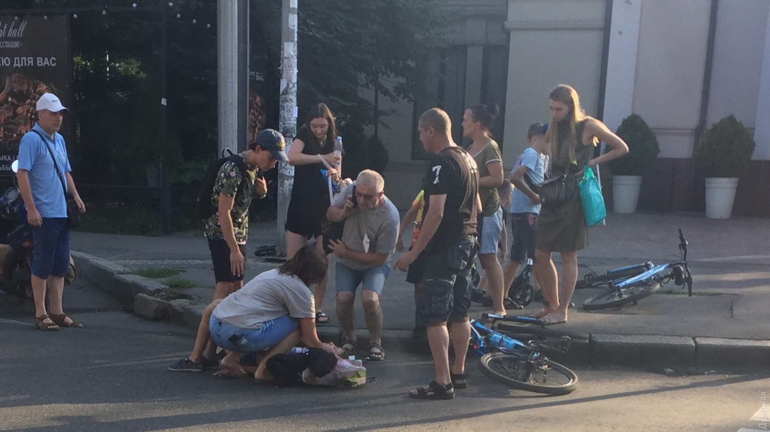 Я проезжал мимо и автобуса не было- то ли он скрылся то ли отъехал подальше. По положению ребёнка и велосипеда тот стоял на проезжей части — ребёнок бился в конвульсиях и ему на глазах начали оказывать пешеходы помощь.
