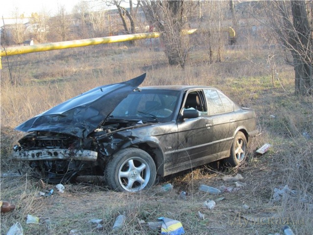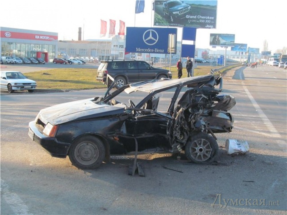 Очевидцы утверждают, что водитель «БМВ» серьезно превысил скорость. Однако показания свидетелей расходятся относительно того, кто управлял иномаркой. Одни утверждают, что за рулем была женщина, а другие заявляют, что пьяный мужчина. Фото — «Взгляд из Одессы»