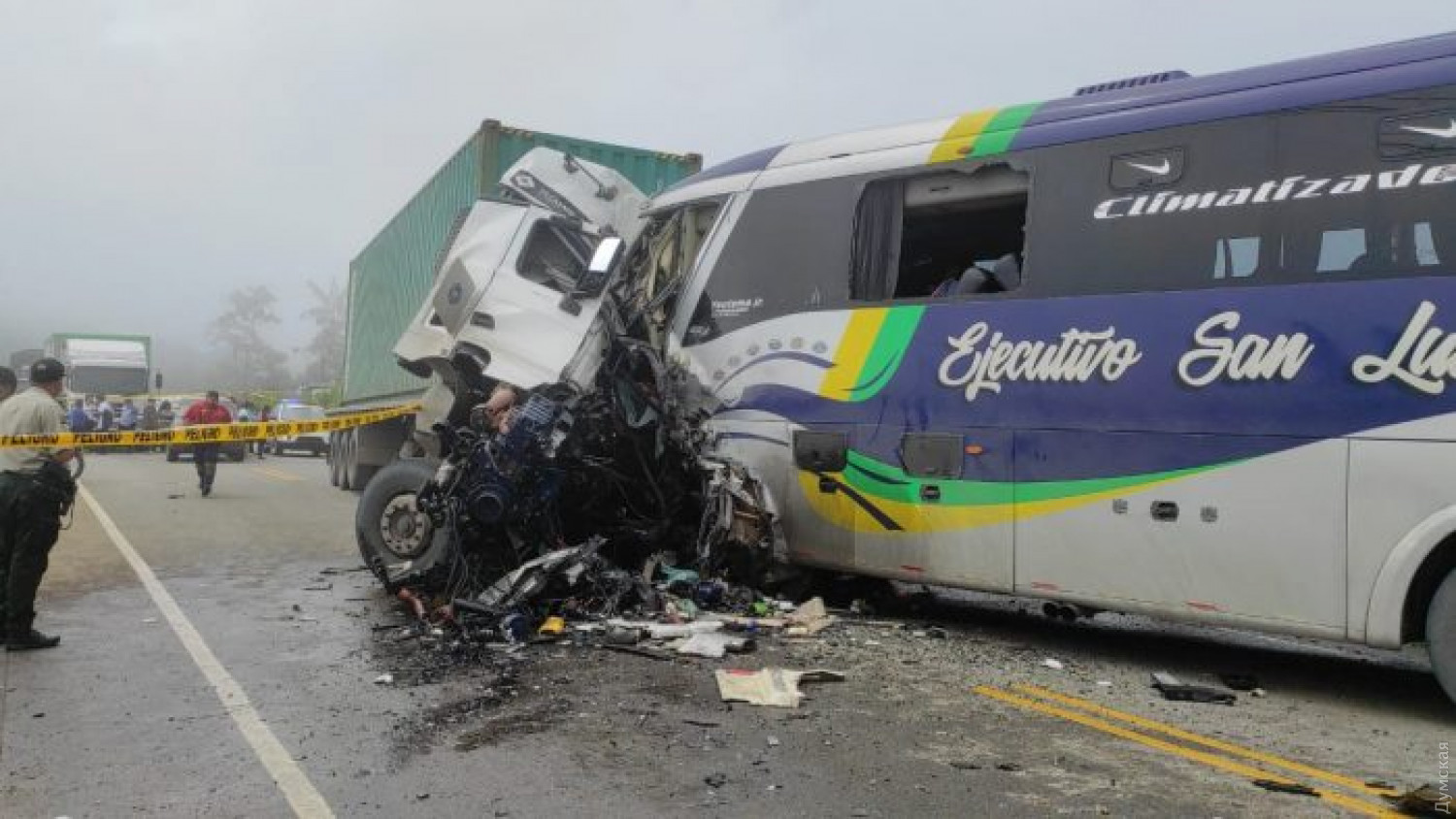В Эквадоре автобус столкнулся с грузовиком: девять человек погибли, несколько десятков — пострадалиКак минимум, девять человек погибли в результате столкновения автобуса с грузовиком в Эквадоре, в провинции Каньяр. Об этом сообщает издание «El Comercio». Уточняется, что примерно в 20 км от кантона Ла-Тронкаль автобус, курсирующий между провинциями, врезался в грузовой фургон. Автобус вез пассажиров из Сан-Луиса в город Куэнка, а трейлер следовал в Гуаякиль, когда они столкнулись в лоб. Пострадали 27 человек. Водитель фургона оказался зажат в покореженном авто. Когда автомобилиста достали, он еще был жив, однако скончался по дороге в больницу. Помимо него, погибли восемь пассажиров автобуса. Всего в автобусе ехало порядка 30 человек. Автомобилисты, которые проезжали мимо, останавливались, чтобы помочь, некоторых пассажиров пришлось доставать через окна. Также на место приехало несколько машин скорой помощи и пожарной охраны. Часть пострадавших увозили на частных автомобилях, так как муниципальных не хватало. Людей с легкими травмами госпитализировали в больницу Дарио Мачука де ла Тронкаль, а тяжело раненых увезли в Гуаякиль. Обстоятельства и причины происшествия выясняются. К расследованию подключились сотрудники дорожной комиссии, нацслужбы по ДТП, полиции и прокуратуры. СМЕРТЬ РОССИЙСКИМ ОККУПАНТАМ! Заметили ошибку? Выделяйте слова с ошибкой и нажимайте control-enter Новости по этой теме: 12 января 2022: Харьковские станции метро ожидает масштабная проверка: в вестибюле подземки на площади Конституции рухнул потолок (фото) 8 января 2022: В Одессе из офиса фирмы выкрали сейф с внушительной суммой денег, золотом и пистолетом 27 декабря 2021: В лесополосе под Киевом нашли тело главврача из Ровенской области: по подозрению в убийстве задержаны таксист с приятелем 23 декабря 2021: В Киеве задержали подозреваемых мошенников, которые обманывали на свиданиях мужчин ради денег |
