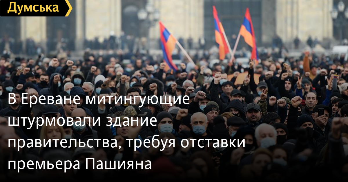 В Ереване митингующие штурмовали здание правительства, требуя отставки премьера ПашиянаАнтиправительственные акции протеста с новой силой возобновились сегодня в столице Армении Ереване. Противники премьер-министра Николы Пашиняна устроили штурм здания правительства. Как сообщает News.am, протестующие сначала хотели заблокировать здание генпрокуратуры и потребовать ареста Никола Пашиняна, но правоохранителям удалось оттеснить демонстрантов. После этого протестующие направились к зданию правительства, требуя отставки его главы. Полиция применила спецсредства, пытаясь оттеснить протестующих. В итоге силовики стали массово задерживать активистов, пытавшихся прорваться в здание правительства. Напомним, масштабные протесты начались в Армении после подписания премьер-министром Пашиняном, президентом Азербайджана Алиевым и президентом Российской Федерации Путиным договора о прекращении вооруженных действий в Нагорном Карабахе. В Армении восприняли это соглашение как признание поражения в войне с Азербайджаном. СМЕРТЬ РОССИЙСКИМ ОККУПАНТАМ! Заметили ошибку? Выделяйте слова с ошибкой и нажимайте control-enter |