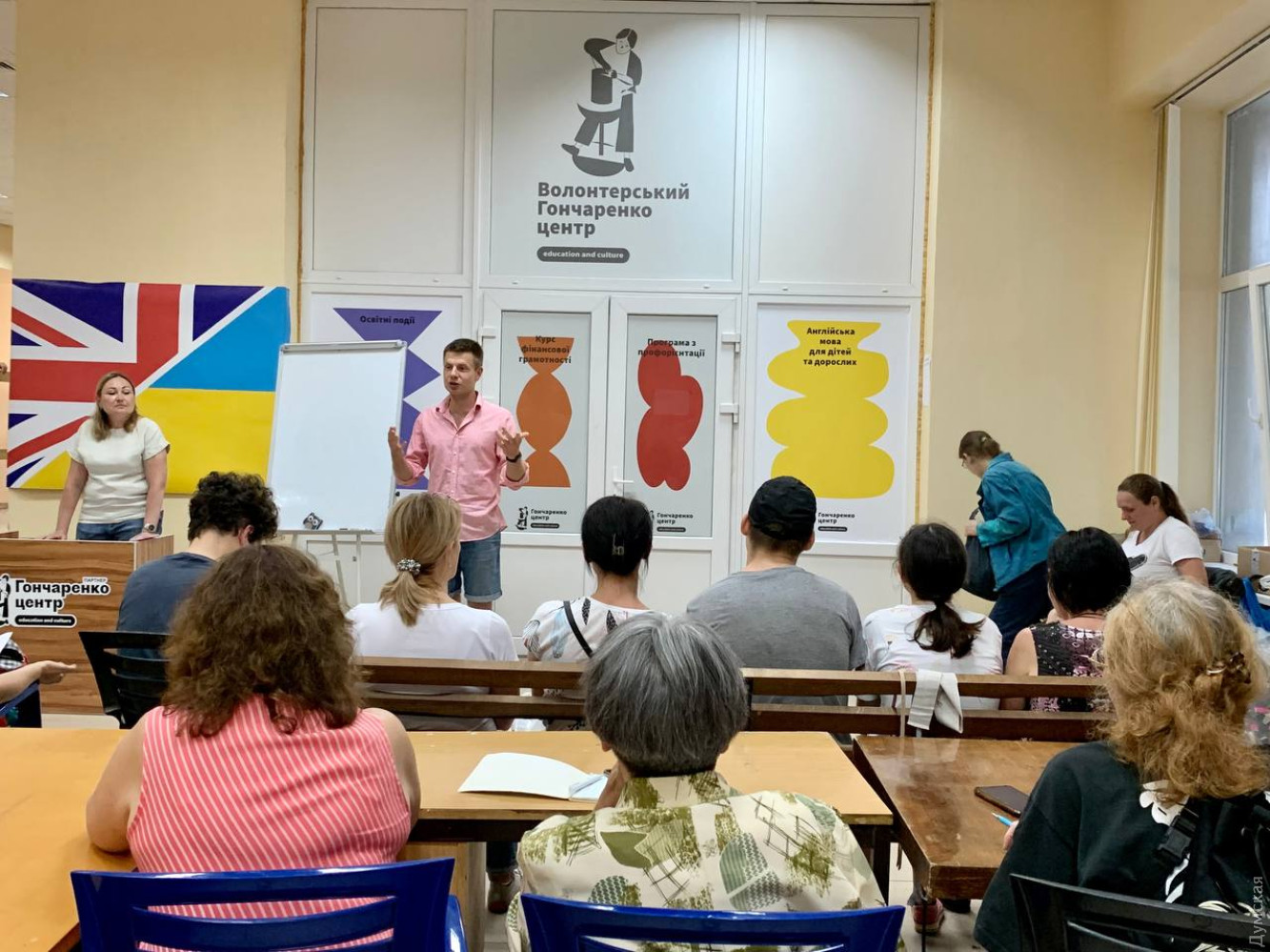 В Гончаренко центре стартовали бесплатные курсы английского для всех желающих (общество)Одесситы и переселенцы из других городов теперь имеют возможность посещать курсы в волонтерском Гончаренко центре. Первый урок посетил особый гость – нардеп и основатель сети образовательных пространств по всей Украине Алексей Гончаренко. Ведет курсы профессиональный педагог с большим стажем, переселенка из Херсона. Гончаренко центр в Одессе — первый, открытый после начала полномасштабного вторжения. Десятки волонтеров ежедневно плетут тут сетки, сортируют и отправляют гуманитарку в Николаев и другие города. И вот стартовало образовательное направление. Первые группы уже начали обучение. «Украинцы – сильные и их не сломать. Наши люди даже во время войны хотят учиться новому и развиваться. Я очень рад, что одесситы понимают, что сейчас знание английского языка – это уже не дополнительная опция. Мир говорит о нас, и мы должны понимать и говорить с миром на одном языке. Качественное и доступное образование остается для нас приоритетом даже в такие сложные времена. Потому что всем нам после победы нужно будет отстраивать нашу страну», — сказал Гончаренко. В центре ежедневно собирают питьевую воду и гуманитарную помощь для Николаева, проводят патриотические мастер-классы и образовательные лекции, трудоустраивают и ищут жилье для переселенцев, оказывают психологическую и юридическую поддержку нуждающимся. СМЕРТЬ РОСІЙСЬКИМ ОКУПАНТАМ! Помітили помилку? Виділяйте слова з помилкою та натискайте control-enter |