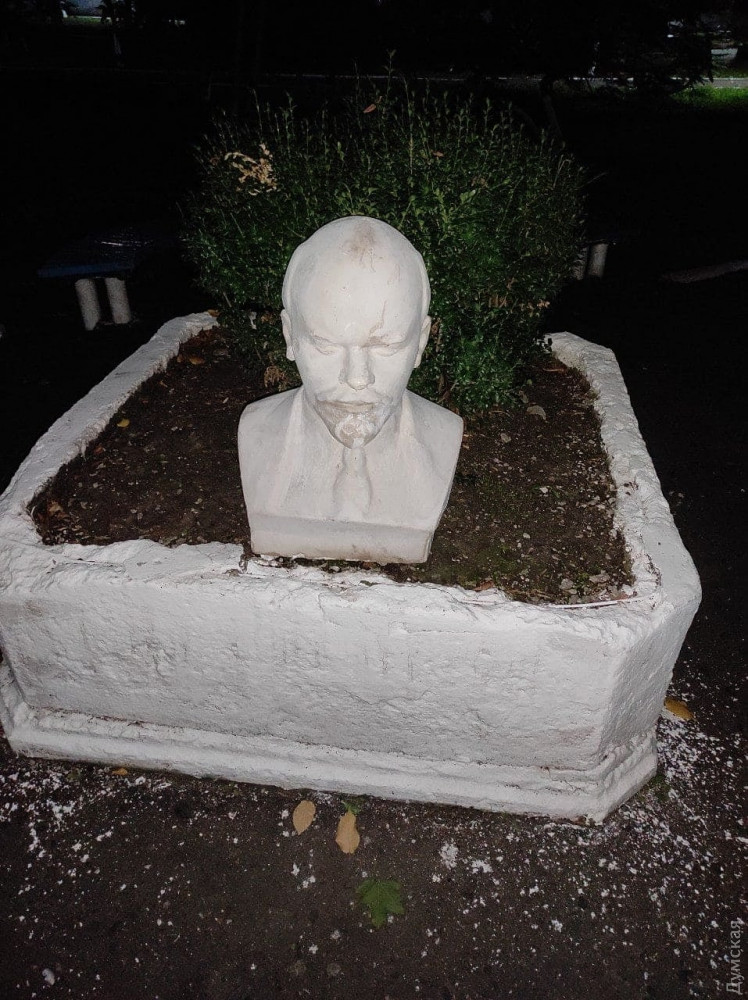 Бюст создателя советского государства Владимира Ленина подкинули неизвестные в городской парк Подольска, что на севере Одесской области. Скульптура появилась в ночь с пятницы на субботу на клумбе недалеко от того места, где до декоммунизации возвышался памятник коммунистическому вождю. Вчера гипсового Ильича убрали коммунальщики. Фото Татьяны Дальчук СМЕРТЬ РОСІЙСЬКИМ ОКУПАНТАМ! Помітили помилку? Виділяйте слова з помилкою та натискайте control-enter Новини по цій темі: 24 вересня 2025: Така різна декомунізація: в Одесі перейменували парк, дві вулиці та розбили погруддя Посмітного 19 травня 2025: Розбита дошка Маринеско і погрози «головному» Пушкіну: деколонізатори не відступають попри побої |