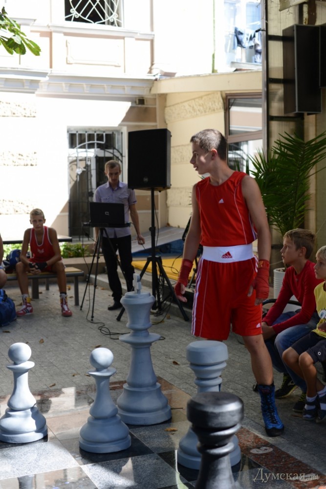 В Горсаду к 220-летию Одессы появились «передвижные шахматы». Они установлены при поддержке армянской диаспоры, сообщает агентство «Трасса Е-95». В честь открытия прошли первые в Одессе соревнования по шахбоксу. В них приняли участие 5 пар возрастом до 15 лет. Шахбокс – гибридный вид спорта, комбинация шахмат и бокса в чередующихся раундах. Бои по шахбоксу официально проводятся с 2003 года. Бой состоит из 11 раундов, нечетные раунды – шахматы (точнее «быстрые шахматы»), четные – бокс. Между раундами – пауза продолжительностью в 1 минуту. Контроль времени в шахматной партии – 12 минут на игрока. Один шахматный раунд длится 4 минуты, один боксерский – 3 минуты. Лучшим становится тот, кто либо поставит мат в шахматах, либо отправит соперника в нокаут. Если шахматная партия заканчивается вничью, а в боксе недостигнут нокаут, решает победа по очкам в боксерских раундах. Если при этом и в боксе присуждена ничья, победа присуждается игравшему черными фигурами. СМЕРТЬ РОСІЙСЬКИМ ОКУПАНТАМ! Помітили помилку? Виділяйте слова з помилкою та натискайте control-enter |