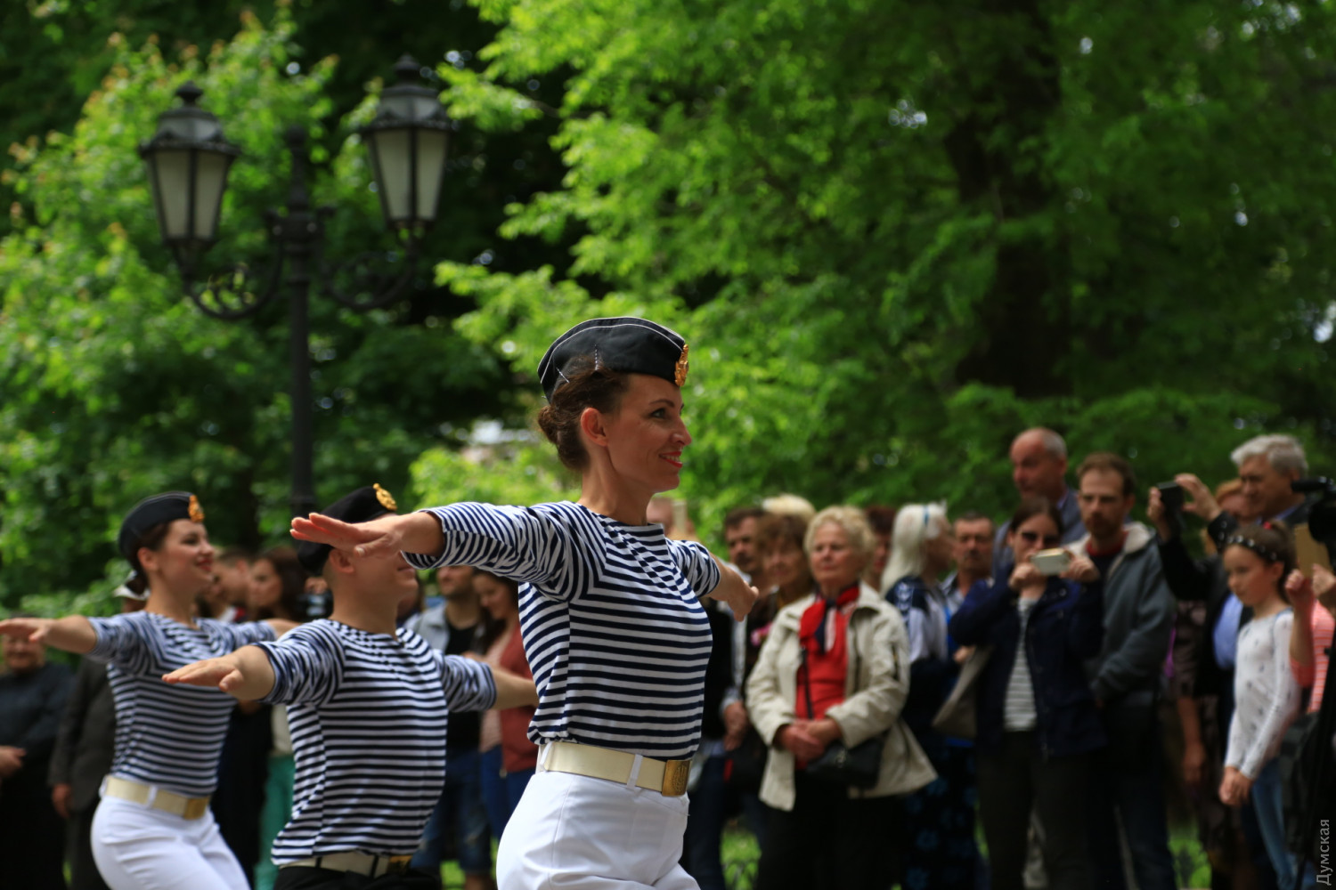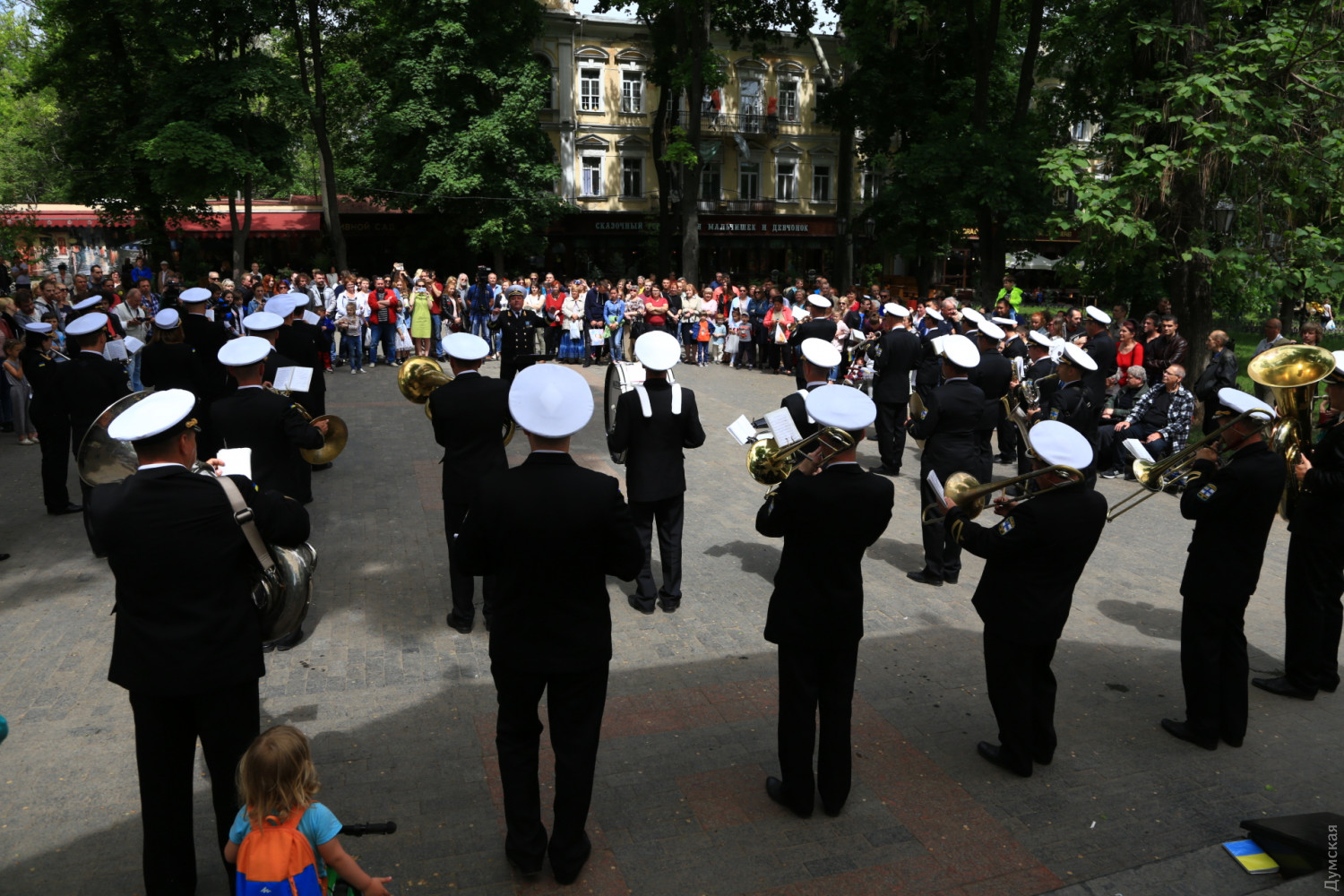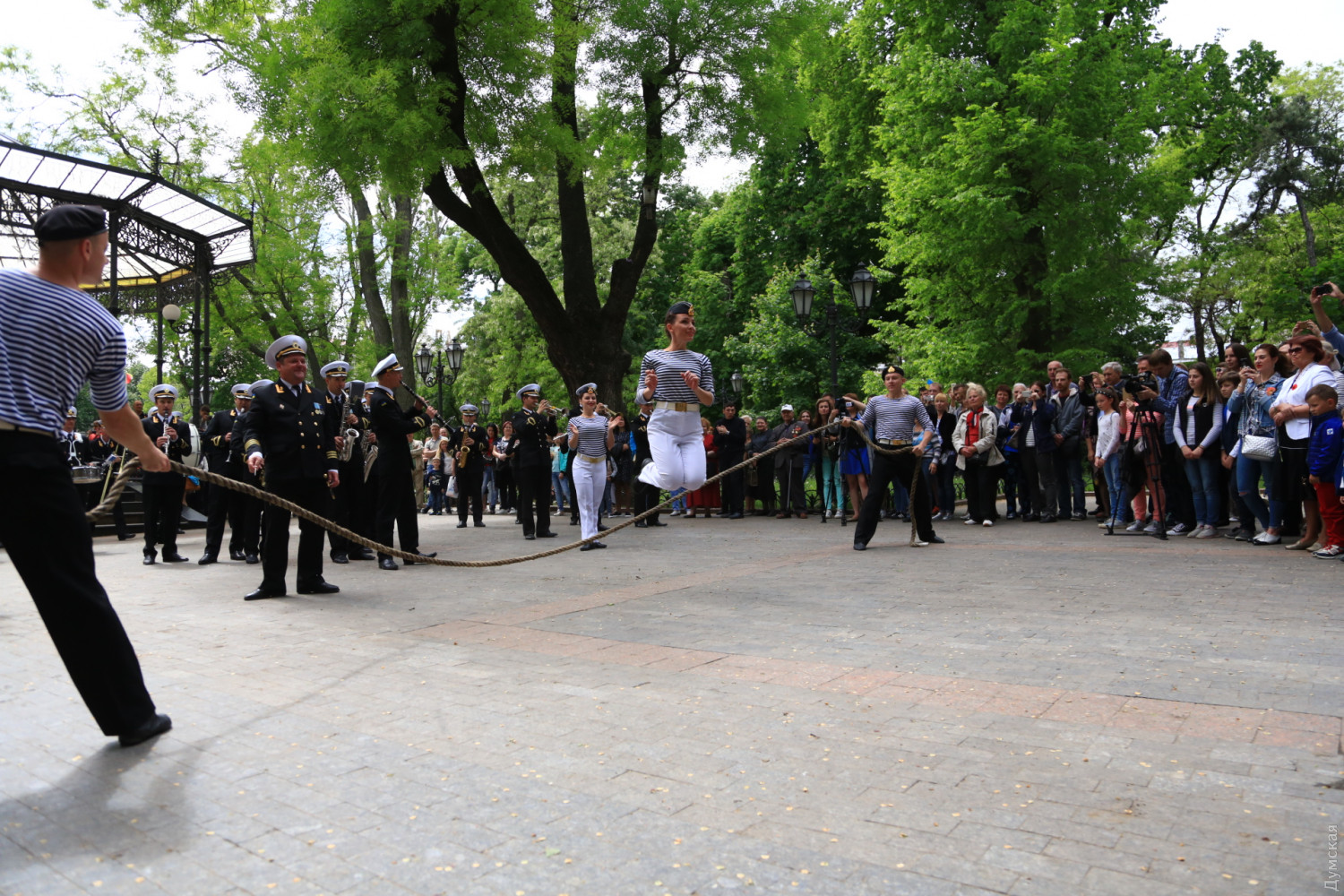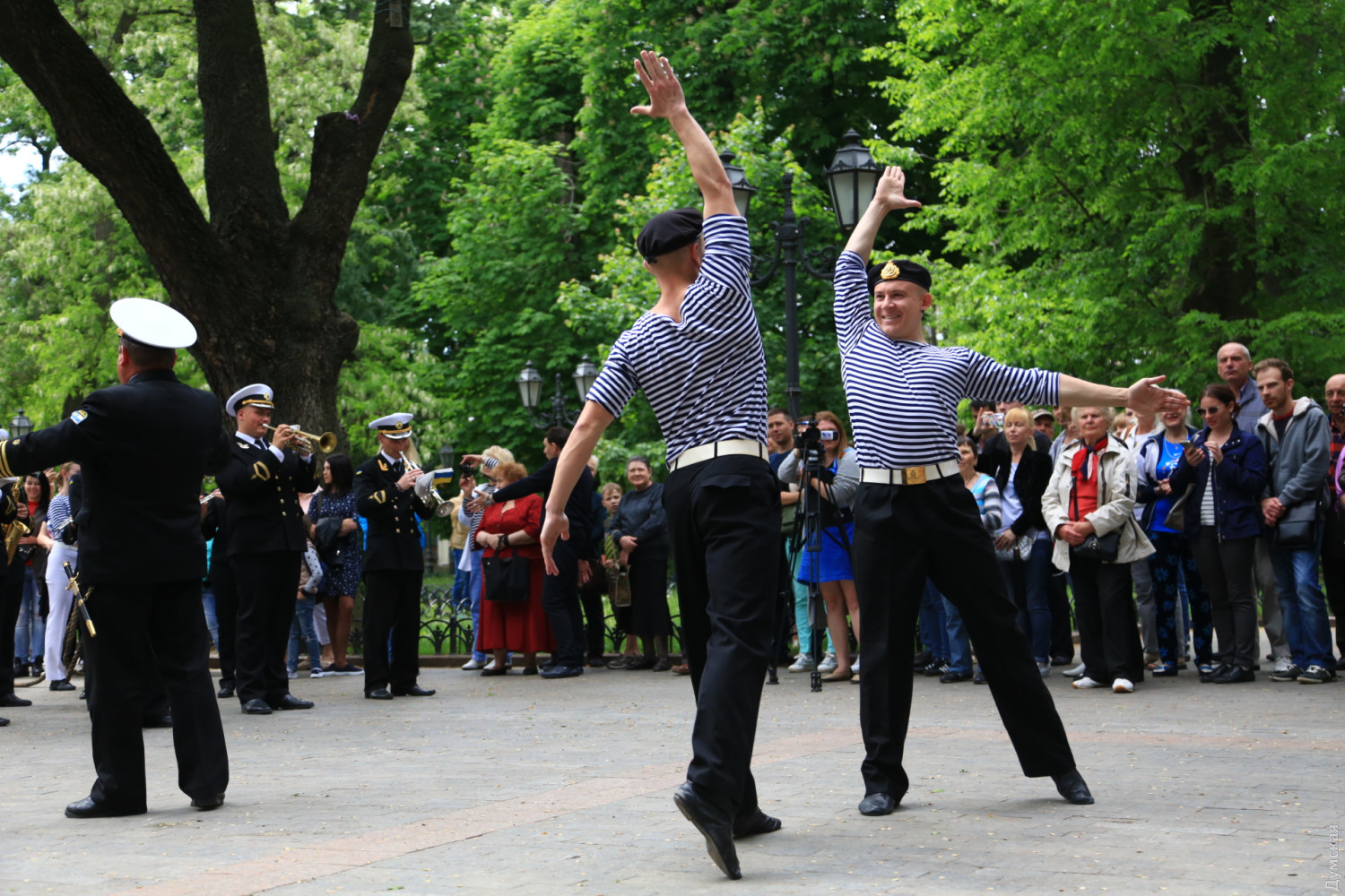 Военные и гражданские духовые оркестры играли сегодня в разных районах Одессы. Концерты были приурочены к 73-й годовщине победы над германским нацизмом, передает корреспондент «Думской». Так, несколько сотен одесситов аплодировали оркестру Военно-морских сил Украины, который в полдень выступал у ротонды в Городском саду. Для публики звучала военная лирика и популярные мелодии послевоенных лет. Не обошлось без традиционных одесских песен. Перед зрителями также выступили флотские танцоры. В парке культуры и отдыха им. Максима Горького играл оркестр управления Южного территориального командования Национальной гвардии Украины и 49 полка охраны общественного порядка НГУ.