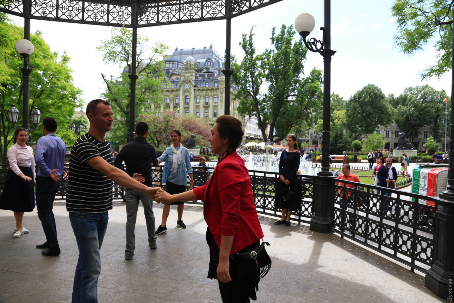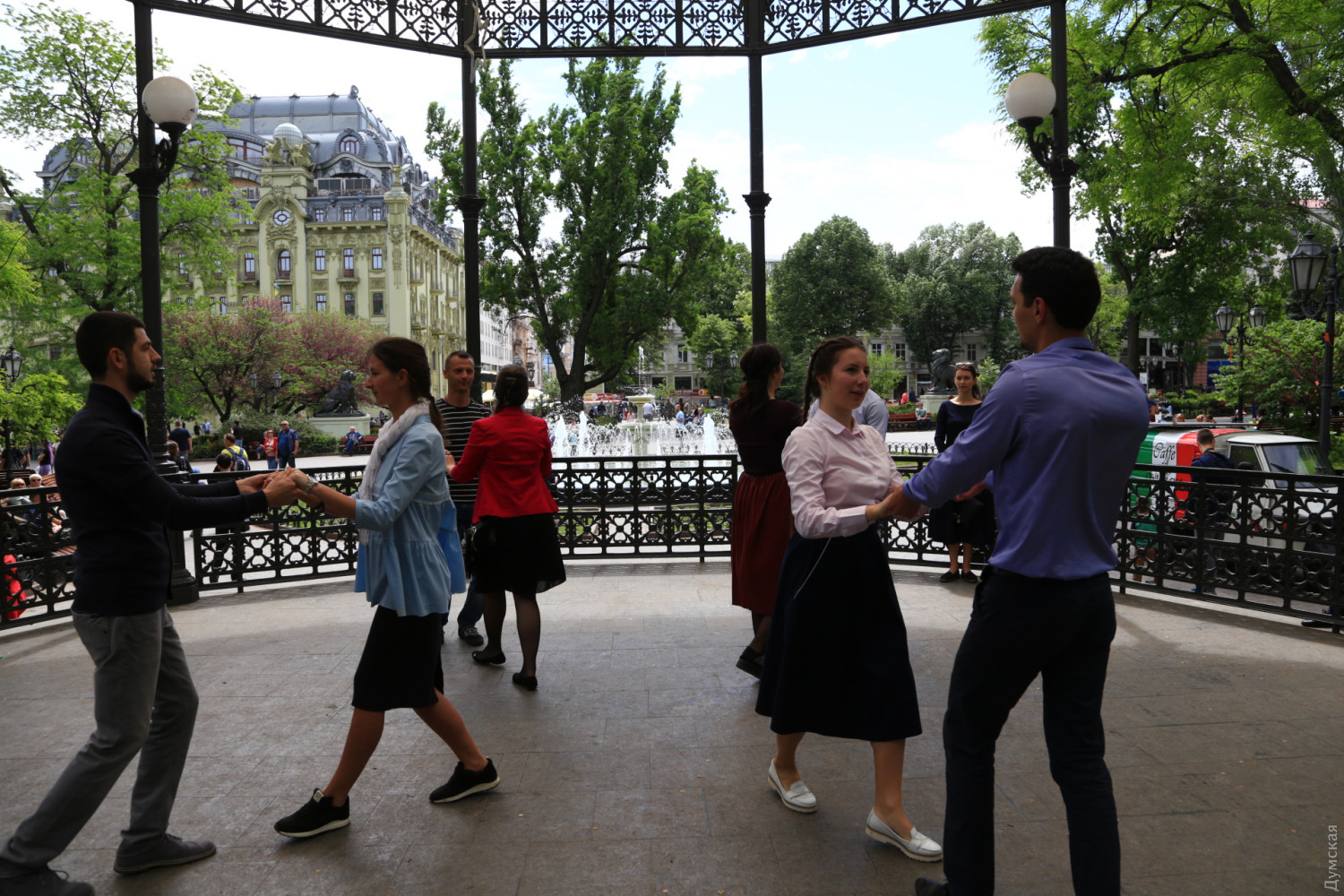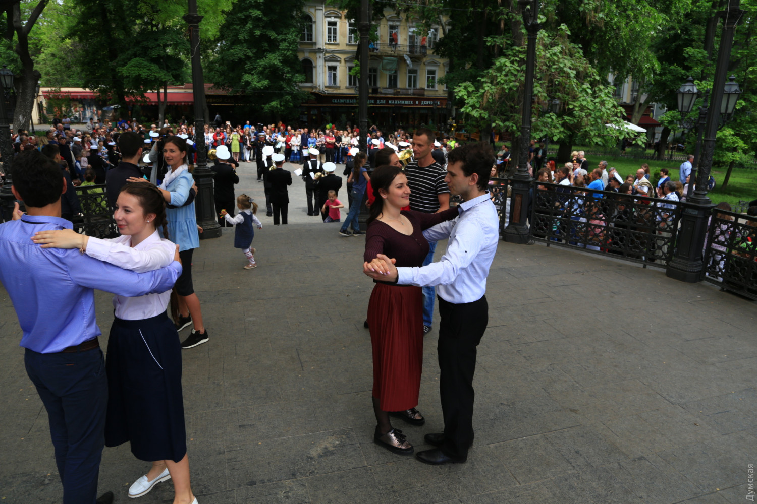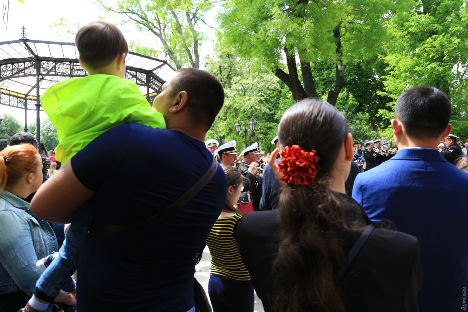 Военные и гражданские духовые оркестры играли сегодня в разных районах Одессы. Концерты были приурочены к 73-й годовщине победы над германским нацизмом, передает корреспондент «Думской». Так, несколько сотен одесситов аплодировали оркестру Военно-морских сил Украины, который в полдень выступал у ротонды в Городском саду. Для публики звучала военная лирика и популярные мелодии послевоенных лет. Не обошлось без традиционных одесских песен. Перед зрителями также выступили флотские танцоры. В парке культуры и отдыха им. Максима Горького играл оркестр управления Южного территориального командования Национальной гвардии Украины и 49 полка охраны общественного порядка НГУ.