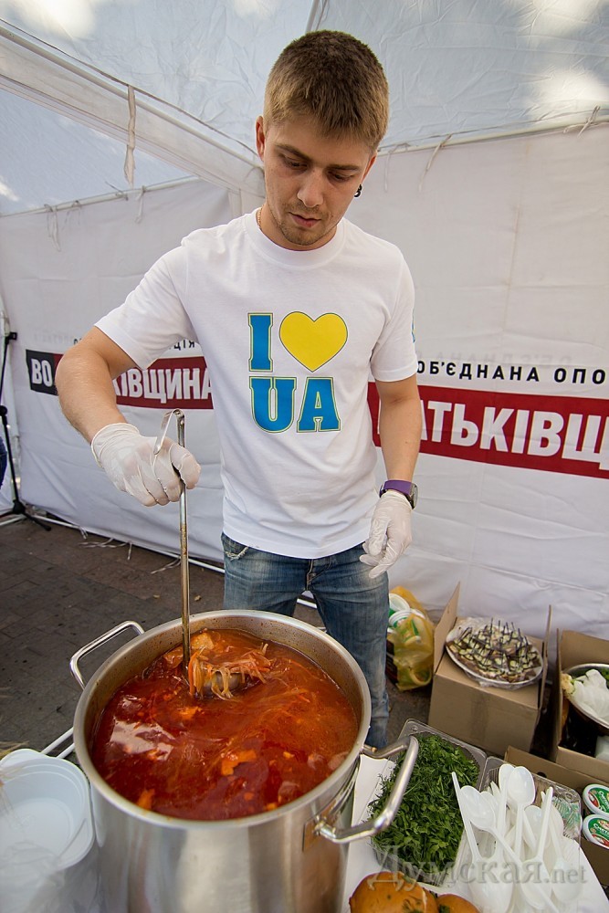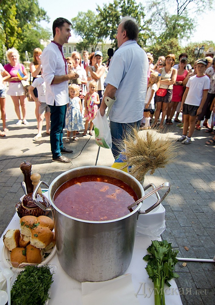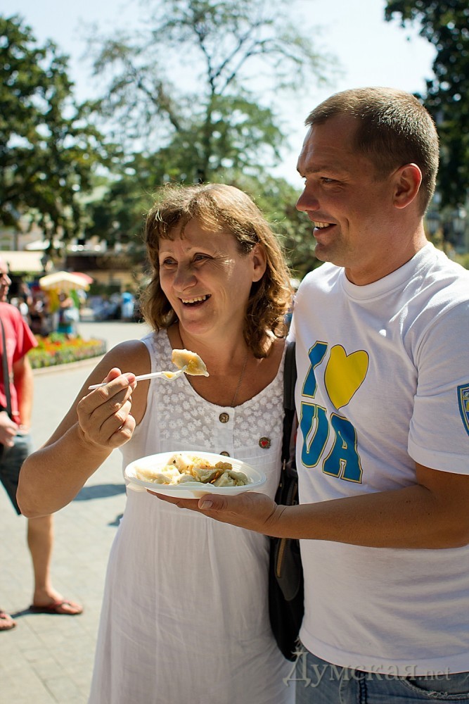 День независимости: в Горсаду всех желающих угощали украинским борщом и вареникамиВ одесском Горсаду прошла необычная акция, приуроченная ко Дню независимости Украины. Несколько общественных организаций угощали всех желающих традиционными украинскими блюдами: наваристым красным борщом, варениками с картошкой и салом. По словам организаторов, данная акция не является политической: «Это очень позитивное мероприятие, — рассказал «Думской» один из них Владимир Усов. — Оно интересно каждому одесситу и гражданину нашей страны, неважно, какой он национальности и политической принадлежности. День независимости — это день, когда мы все радуемся, что у нас есть своя страна и только от нас зависит, какой она будет завтра». Все блюда были приготовлены руками самих активистов и их жен. Это подтверждают и гости, отведавшие угощения. Так, по словам одесситки Елены Петровны, вареники и борщ получились очень вкусными и по-настоящему домашними. «Я каждый день гуляю в Горсаду с внуком и, если честно, такое угощение, особенно в обеденное время пришлось очень кстати», — заявила она. Среди попробовавших национальной украинской кухни были и туристы из Италии. Посетивший почти все страны мира 76-летний Роберто Дарини, рассказал, что украинская кухня — самая вкусная. По словам итальянца, вареники стали для него настоящим открытием, и он просто заставит свою дочь научиться их готовить. Одесситы и гости города, принявшие участие в акции, смогли не только насладиться национальной украинской кулинарией, но и узнать историю возникновения украинских блюд, разучить национальные песни и танцы. Фото: Александр Гиманов СМЕРТЬ РОСІЙСЬКИМ ОКУПАНТАМ! Помітили помилку? Виділяйте слова з помилкою та натискайте control-enter |