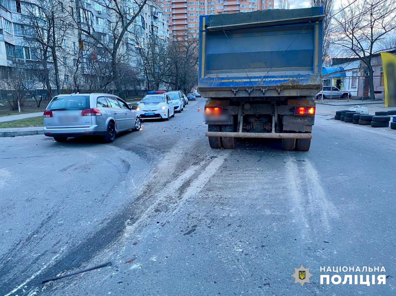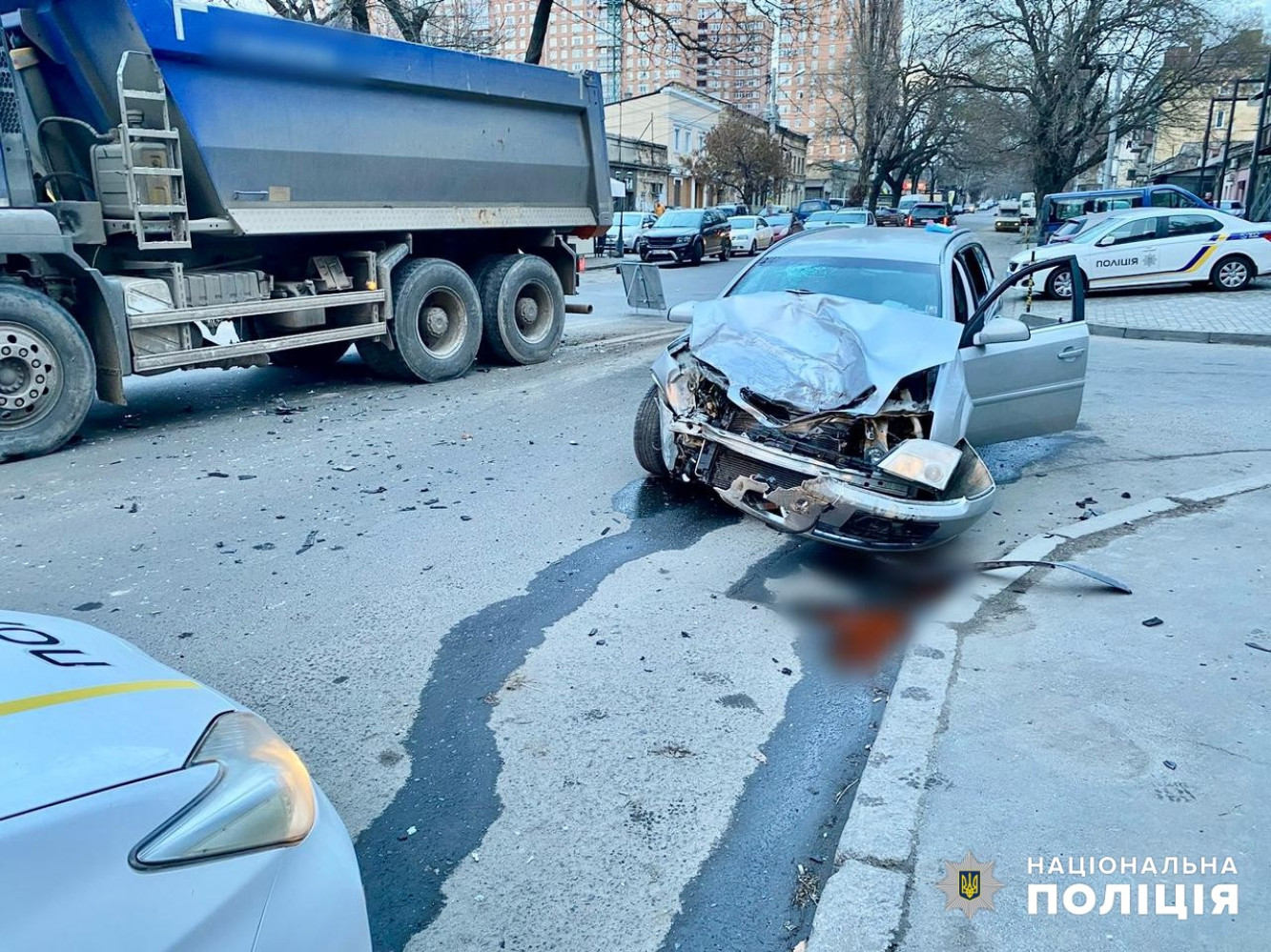Внаслідок цього постраждав водій легковика, якого госпіталізували із закритою черепно-мозковою травмою, струсом головного мозку, рубаною раною лобової ділянки та закритим переломом кісток колінного суглоба.