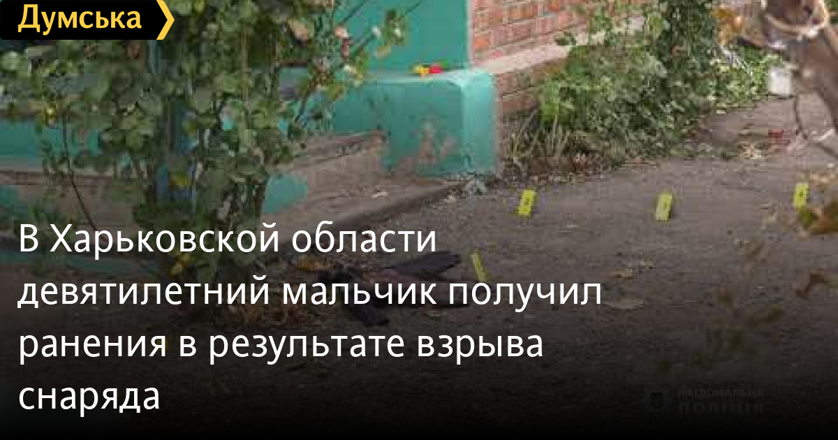 В Харьковской области девятилетний мальчик получил ранения в результате взрыва снарядаВ селе Коробочкино Харьковской области в результате взрыва боеприпаса ранения получил девятилетний ребенок. Об этом сообщает пресс-служба Национальной полиции. Правоохранители предварительно установили, что ребенок играл во дворе частного дома. Мальчик бросил неустановленный предмет в забор, в результате чего этот предмет взорвался. В ходе проведения осмотра специалисты-взрывотехники выяснили, что произошел взрыв артиллерийского снаряда. «Ребенка с рваными ранами щеки, голени, пальцев руки, а также с травматической ампутацией правой кисти доставили в больницу», — говорится в сообщении. По данному факту сведения внесены в Единый реестр досудебных расследований по ч. 1 ст. 263 (незаконное обращение с оружием, боевыми припасами или взрывчатыми веществами), ст. 166 (злостное невыполнение обязанностей по уходу за ребенком или за лицом, в отношении которого установлена опека или попечительство) и ч. 2 ст. 115 с пометкой «несчастный случай» Уголовного кодекса Украины. СМЕРТЬ РОССИЙСКИМ ОККУПАНТАМ! Заметили ошибку? Выделяйте слова с ошибкой и нажимайте control-enter |