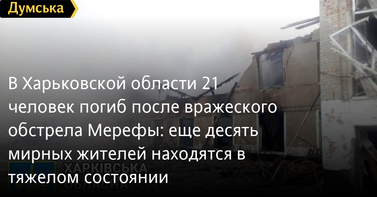 В Харьковской области 21 человек погиб после вражеского обстрела Мерефы: еще десять мирных жителей находятся в тяжелом состоянииВ результате обстрела российскими нацистами города Мерефа в Харьковской области 21 человек погиб. Как сообщили в Харьковской областной прокуратуре, ранения получили 25 человек, из которых десять находятся в тяжелом состоянии. Работы по расчистке завалов продолжаются. Начато досудебное расследование по факту нарушения законов и обычаев войны, соединенного с умышленным убийством (ч. 2 ст. 438 УК Украины). Варварский артиллерийский обстрел был совершен около 3:30 утра 17 марта. В результате российские нацисты разрушили общеобразовательную школу и городской дом культуры. СМЕРТЬ РОСІЙСЬКИМ ОКУПАНТАМ! Помітили помилку? Виділяйте слова з помилкою та натискайте control-enter |