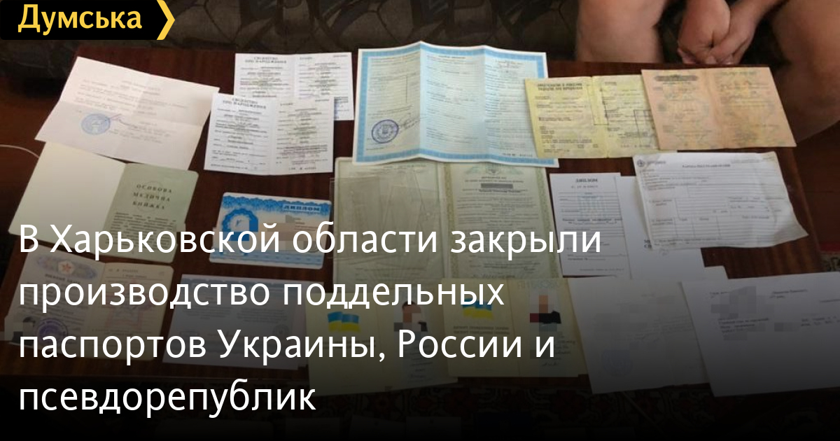 В Харьковской области закрыли производство поддельных паспортов Украины, России и псевдорепубликДвух жителей Харьковской области подозревают в подделке документов и легализации имущества, полученного преступным путем. Как сообщили в Офисе генпрокурора, подельники наладили производство паспортов Украины, РФ, Армении, самопровозглашенных псевдореспублик ДНР и ЛНР. Также злоумышленники изготавливали дипломы вузов, водительские удостоверения и другие документы. Готовые заказы они отправляли по почте. Стоимость одного поддельного документа составляла от 500 до 1000 долларов. В ходе обысков правоохранители нашли и изъяли оборудование, на котором изготавливались документы, а также бланки паспортов и клише печатей. Уголовное производство открыто по ч. 3 ст. 358 (подделка документов, печатей, штампов), ч. 1 ст. 209 (легализация доходов, полученных преступным путем) УК Украины. Решается вопрос об избрании подозреваемым меры пресечения. СМЕРТЬ РОССИЙСКИМ ОККУПАНТАМ! Заметили ошибку? Выделяйте слова с ошибкой и нажимайте control-enter |