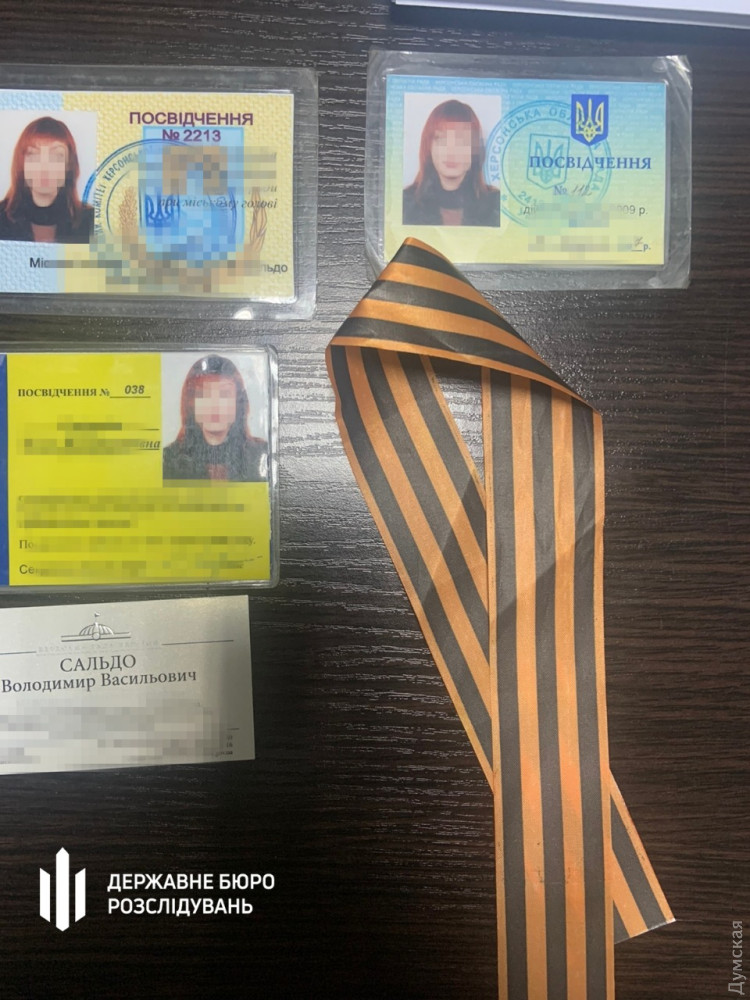 У Херсоні провели обшук у будинку в колаборанта Сальдо (фото, відео)Співробітники Державного бюро розслідувань у Херсоні провели обшуки в особняку колаборанта Володимира Сальдо, призначеного росіянами «тимчасовим виконувачем обов'язків губернатора Херсонської області», а також у будинках його спільників. У ДБР повідомили, що в пособника окупантів знайшли списки херсонських патріотичних активістів, російські пропагандистські книжки, конспекти російських законів, багато радянських і російських нагород, георгіївські стрічки. У суді перебуває обвинувальний акт щодо Сальдо та його заступника, так званого «голови Херсонської міської адміністрації» Олександра Кобця. Їм інкримінують державну зраду, колабораційну діяльність, виправдання російської агресії проти України та прославляння її учасників. СМЕРТЬ РОСІЙСЬКИМ ОКУПАНТАМ! Помітили помилку? Виділяйте слова з помилкою та натискайте control-enter |