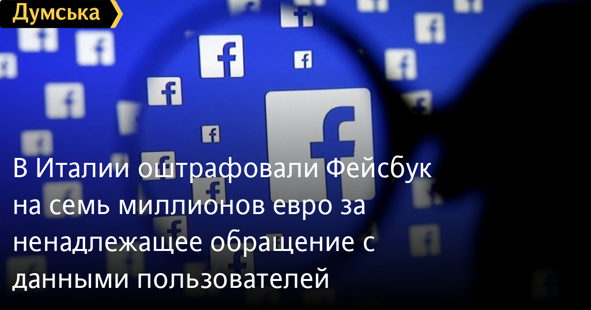 В Италии оштрафовали Фейсбук на семь миллионов евро за ненадлежащее обращение с данными пользователейИтальянский регулятор (Autorità Garante della Concorrenza e del Mercato) оштрафовал компанию «Фейсбук» на семь миллионов евро за невыполнение предыдущего распоряжения 2018 года по поводу обращения с данными пользователей. Об этом сообщает «Европейская правда». Регулятор еще в 2018 году оштрафовал компанию на пять миллионов евро за то, что Фейсбук на этапе регистрации не предупреждает пользователей, что будет собирать данные об их активности в коммерческих целях, фактически в обмен на бесплатное пользование программой. По мнению итальянского регулятора, информация, которую Фейсбук предоставляла пользователям, была неполной и в ней четко не разграничивали вопрос о данных, необходимых для персонализации сервиса — удобного общения в соцсетях, и данных, собираемых для таргетирования рекламных кампаний. Поскольку данное решение не было выполнено, теперь регулятор наложил на компанию новый штраф за «невыполнение распоряжения прекратить ненадлежащее обращение с данными пользователей и за неопубликованное заявление об исправлении, как того требовал регулятор». В свою очередь представитель Фейсбук отметил, что компания примет во внимание решение регулятора, но подождет выводов апелляционной инстанции по поводу первого решения, которое было обжаловано. СМЕРТЬ РОССИЙСКИМ ОККУПАНТАМ! Заметили ошибку? Выделяйте слова с ошибкой и нажимайте control-enter |