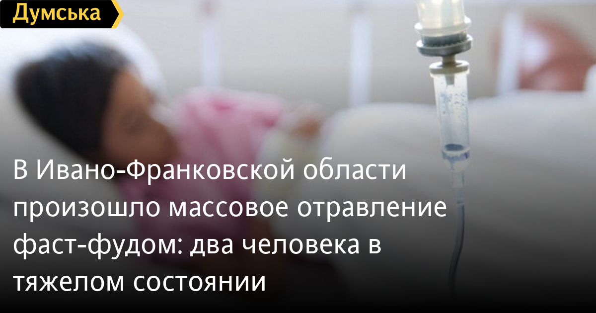 В Ивано-Франковской области произошло массовое отравление фаст-фудом: два человека в тяжелом состоянииВ результате массового отравления в одном из заведений быстрого питания в городе Калуш Ивано-Франковской области, 12 человек оказались в больнице. Как сообщила пресс-служба Ивано-Франковской ОГА, все пострадавшие были доставлены в инфекционное отделение городской больницы с предварительным диагнозом «острый гастроэнтероколит, сальмонеллез». Из 12 госпитализированных — двое дети. Врачи оценивают состояние десяти человек как средней тяжести, а еще двоих — как тяжелое. Все пострадавшие ели лаваш с курицей в заведении общественного питания «Crispy». Сейчас специалисты устанавливают перечень населенных пунктов, вовлеченных во вспышку кишечной инфекции. СМЕРТЬ РОССИЙСКИМ ОККУПАНТАМ! Заметили ошибку? Выделяйте слова с ошибкой и нажимайте control-enter Новости по этой теме: 12 января 2022: Харьковские станции метро ожидает масштабная проверка: в вестибюле подземки на площади Конституции рухнул потолок (фото) 8 января 2022: В Одессе из офиса фирмы выкрали сейф с внушительной суммой денег, золотом и пистолетом 27 декабря 2021: В лесополосе под Киевом нашли тело главврача из Ровенской области: по подозрению в убийстве задержаны таксист с приятелем 23 декабря 2021: В Киеве задержали подозреваемых мошенников, которые обманывали на свиданиях мужчин ради денег |