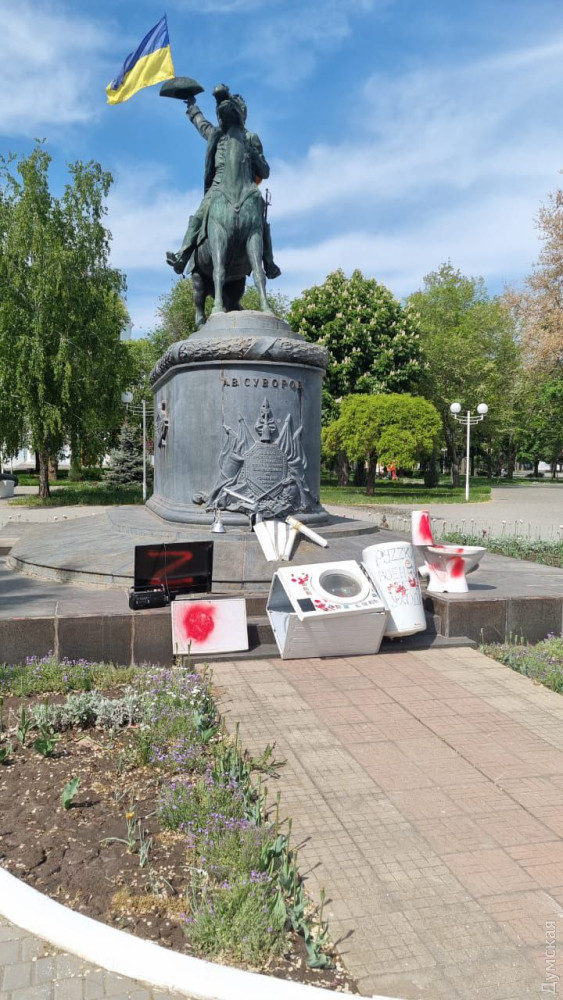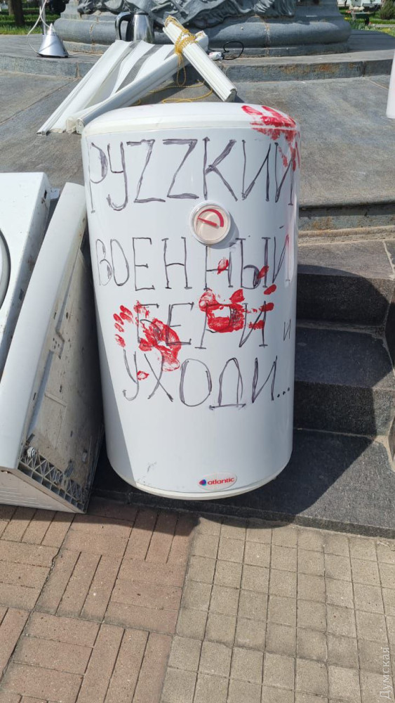 Жители Измаила принесли к памятнику российскому полководцу Александру Суворову «подарки» для мародеров из армии рф. Участники акции выставили унитаз, бойлер, старую стиральную машинку, телевизор и другие бытовые предметы, которые так любят выносить из украинских домов российские оккупанты. «РуZZкий военный, бери и уходи», — оставили послание участники акции. СМЕРТЬ РОСІЙСЬКИМ ОКУПАНТАМ! Помітили помилку? Виділяйте слова з помилкою та натискайте control-enter |