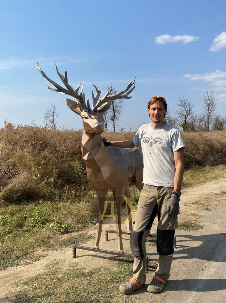 В городе на юге Одесской области скульптор установил геометрических оленей — чтобы красиво провожать закатВ Измаиле благодаря энтузиазму местного скульптора Андрея Деньгина появился новый арт-объект. За собственные средства он изготовил и установил семейство геометрических оленей – маму и олененка. Полигональные скульптуры украсили один из склонов, куда горожане приходят посмотреть на закат. Как только не называют Андрея Деньгина в Измаиле – и Маленьким принцем, который вырос, и тем «благодаря кому восходит солнце, если не срабатывает автоматика», и мастером на все руки, и просто земляком, которым можно гордиться. Андрей – человек, которому не жалко времени и денег, чтобы сделать мир вокруг немного лучше. Именно такой мотив и побудил его подарить городу скульптуры оленей. Работа над проектом стартовала еще летом. Сперва была разработка концепции, эскиза и визуализация 3D модели. Сюжет проекта возник спонтанно. «Олень — это благоприятный символ, ассоциирующийся с солнцем, светом, чистотой, возрождением. Из-за сходства оленьих рогов с ветвями, образ оленя связан с Древом Жизни», — рассказывает скульптор. Своих оленей мастер решил создать в стиле полигонального минимализма. Это когда скульптура состоит из разной величины геометрических граней, соединенных между собой. Для отработки новой для себя техники и для понимания процесса переноса компьютерной модели в реальный мир Андрей сперва тренировался на бумаге и создавал макеты. Только после этого перешел к работе с металлом. Всего ему понадобилось около сотни отрезных дисков для резки металла, пара десятков зачистных дисков и несколько листов металла. Два месяца кропотливой работы и мама-олениха и ее малыш были готовы. Вес геометрической оленихи – 30 кг. Из мастерской скульптора семейство рогатых переехало на один из измаильских склонов. Отсюда открывается красивая панорама на древний город, а по вечерам здесь удобно лицезреть самое красивое природное шоу – закат. «Олени символично смотрят в сторону заходящего солнца. Они знают, что каждый закат — это начало очень яркого и большого рассвета. Поэтому глаза их полны заката, а сердца их полны рассвета. Это замечательное место, в которое можно прийти посмотреть, как садится солнце и угасает день. Ни один закат не похож на другой, краски неба не бывают одинаковыми. И закаты, и рассветы обладают неповторимой красотой! Я заметил, что каждый раз, когда прихожу сюда, мои внутренние резервуары наполняются силой, уходит суета и остается что-то очень чистое», — говорит скульптор. Андрея Деньгина уже хорошо знают в Измаиле. Его лабиринт-сад камней, стрелка с оптической иллюзией, указатель счастья и скамейка установлены на том же склоне, по соседству с оленями. Реализовать свои затеи Андрею помогают друзья – вместе они регулярно убирают полюбившийся склон и поддерживают все инициативы скульптора. Кроме того, Андрей Деньгин – известный мастер по дереву. Он создает из древесины удивительной красоты мебель и даже целые дома. Один из недавних своих проектов он реализовал в Чехии. Это полностью деревянный дом в виде гриба, который стоит на живописных склонах, вдалеке от городской суеты и благодаря своему эко-дизайну очень органично вписывается в местный пейзаж. Строительство велось девять месяцев. Для Измаила скульптор мечтает сдел