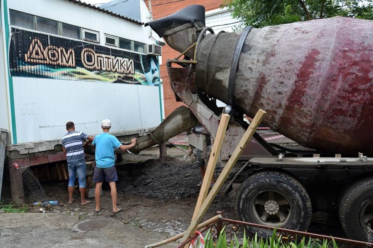 В пятницу, 28 июля, в Измаиле после прошедших дождей образовались провалы на пересечении улиц Пушкина и Папанина — месте попадания ливневых стоков в пустоты под ливневкой. Как сообщает портал «Курьер», с самого утра горожане обратили внимание на то, что во время дождя на улице Папанина, нижняя часть которой служит для стока дождевой воды, никакого потока не было. Затем сотрудники «Дома оптики», расположенного на ул. Пушкина (угол ул. Папанина) прямо на сваях над ливневкой, услышали шум под своим помещением. Оказалось, что прямо под постройкой образовалась яма диаметром около одного метра. В скором времени началось резкое обрушение грунта, во время которого стали одна за другой обнажаться сваи под оптикой. После этого появился провал и на ул. Пушкина, который постоянно заполнялся водой. Сотрудники водоканала откачали из места обрушения под оптикой порядка 70 кубометров воды. Потом образовавшуюся яму работники ЧП «Родник» стали заливать гидробетоном – всего понадобилось около 70 кубов раствора. Как пояснил начальник Измаильского ПУВКХ Виталий Белов, обрушение грунта возникло из-за того, что в данном месте, на ул. Папанина и ул. Пушкина, имеется много пустот под землей. Они во время осадков наполнились водой, что и вызвало разрушения. Он также заверил, что происшествие никак не связано с водопроводными и канализационными трубопроводами. К этому стоит добавить, что два года назад, 17 июня 2015 года, на соседнем квартале – на пересечении улиц Папанина и Покровской (Комсомольской) — после ливней также появился громадный провал диаметром 10 метров. Произошедшее тогда пояснили наличием под землей старинных турецких ходов. Обвал ликвидировали, засыпав его грунтом. СМЕРТЬ РОСІЙСЬКИМ ОКУПАНТАМ! Помітили помилку? Виділяйте слова з помилкою та натискайте control-enter Новини по цій темі: 9 квітня 2024: Руйнування набережної, тріщини в схилах, зате чиста вода: як Одеса до курортного сезону готується (фото) 19 травня 2023: На просідаючому узвозі в центрі Одеси почалася геологічна розвідка: спецтехніка пробурила кілька свердловин 1 березня 2023: Мегапровал на одеських Черемушках нарешті ліквідовано (фото) |