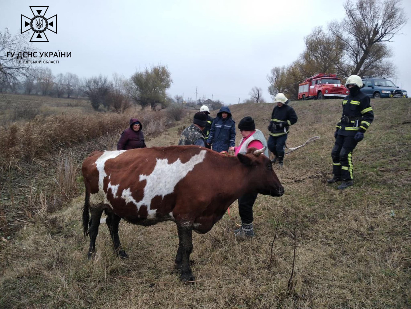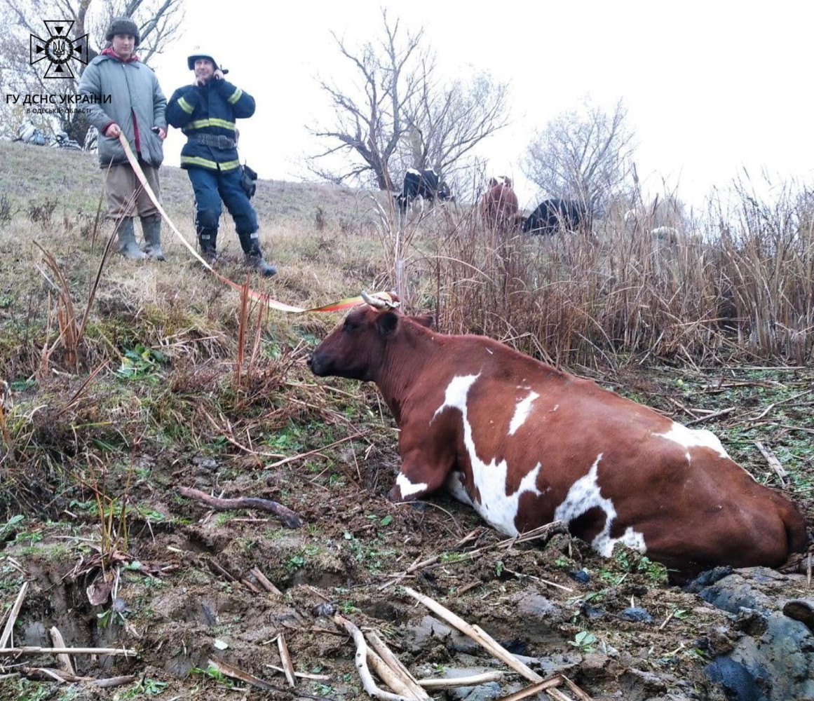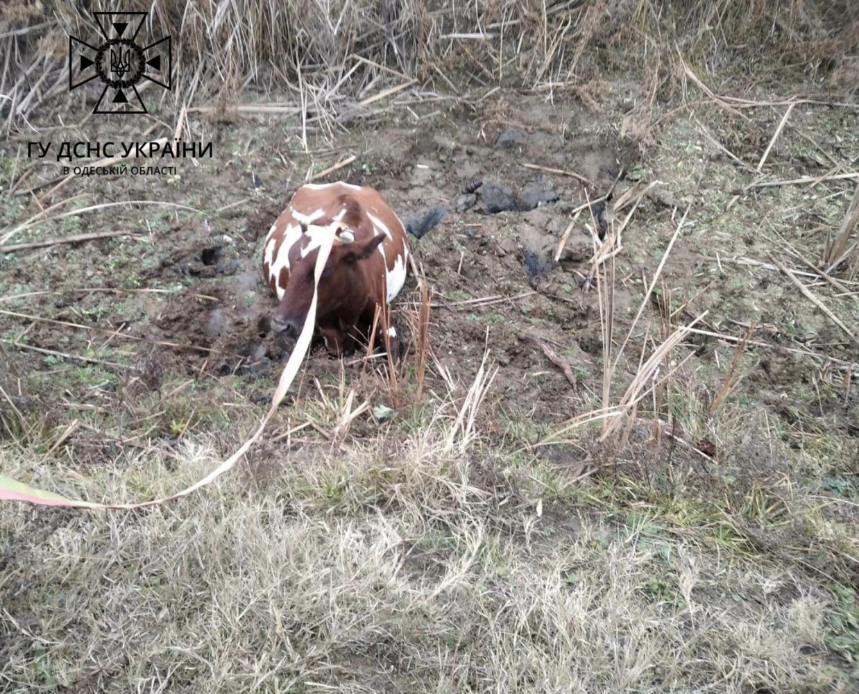 Як повідомили у пресслужбі відомства, до них звернулася занепокоєна жінка, яка розповіла, що за межами села Матроска Ізмаїльського району у болоті застрягла корова.
