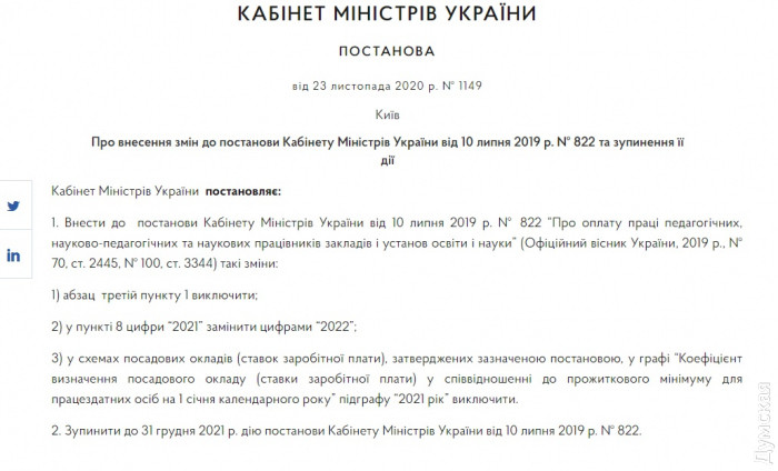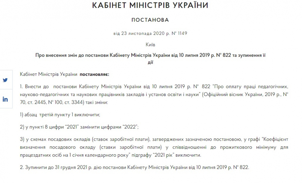 «Поэтому действие указанного постановления Правительства было остановлено и на этот год (постановление Кабинета Министров Украины от 15.11.2019 № 1044) при отсутствии на 2020 год средств на ее реализацию», — говорится на сайте МОН.