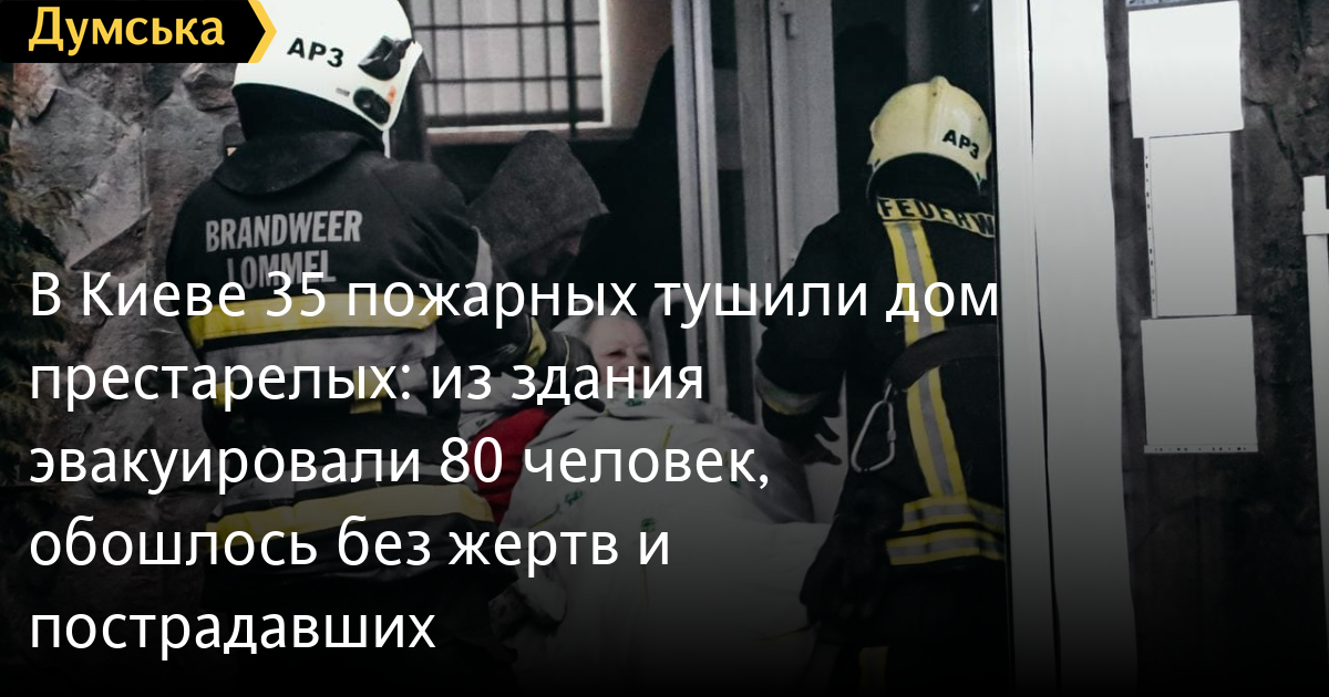 В Киеве 35 пожарных тушили дом престарелых: из здания эвакуировали 80 человек, обошлось без жертв и пострадавшихПожар вспыхнул сегодня утром в столичном доме престарелых «Серебряный век», расположенном в Подольском районе Как сообщили в пресс-службе ГСЧС, возгорание произошло на крыше трехэтажного здания. Пожар вспыхнул в 5:51. В 6:55 пожар локализовали на площади 100 м², а в 7:17 огонь потушили полностью. В момент пожара в доме престарелых находилось 65 пенсионеров. Спасатели и обслуживающий персонал с верхних этажей эвакуировали на первый этаж 80 человек (из них 65 пожилых людей и 15 человек персонала). К тушению огня привлекли 35 человек и восемь единиц техники, жертв и пострадавших нет. Напомним, 21 января в Харькове сгорел нелегальный дом престарелых -в пожаре погибли 15 человек. СМЕРТЬ РОССИЙСКИМ ОККУПАНТАМ! Заметили ошибку? Выделяйте слова с ошибкой и нажимайте control-enter |