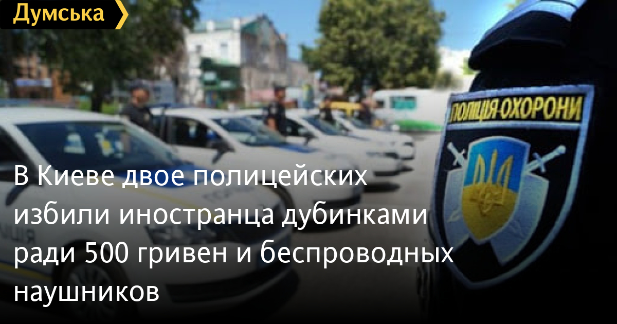 В Киеве двое полицейских избили иностранца дубинками ради 500 гривен и беспроводных наушниковКиевская прокуратура сообщила о подозрении двум полицейским охраны, которые вывезли иностранца в лес, избили и ограбили. Об этом сообщила пресс-служба ведомства. Произошло преступление в полночь 1 июля 2021 года. Двое сотрудников полиции охраны под надуманным предлогом остановили гражданина Армении и начали проводить незаконный личный обыск, требуя от него 500 гривен. Не достигнув цели, они заставили мужчину сесть в служебный автомобиль и вывезли его в пустынное место в районе Лесного массива в Киеве. Там они начали избивать мужчину руками и резиновыми дубинками, после чего отобрали у него 500 гривен и беспроводные наушники. Правоохранителям уже сообщили о подозрении по факту превышения власти, вымогательства, незаконного лишения свободы и кражи. Им избрана мера пресечения в виде содержания под стражей без права внесения залога. СМЕРТЬ РОССИЙСКИМ ОККУПАНТАМ! Заметили ошибку? Выделяйте слова с ошибкой и нажимайте control-enter Новости по этой теме: 12 января 2022: Харьковские станции метро ожидает масштабная проверка: в вестибюле подземки на площади Конституции рухнул потолок (фото) 8 января 2022: В Одессе из офиса фирмы выкрали сейф с внушительной суммой денег, золотом и пистолетом 27 декабря 2021: В лесополосе под Киевом нашли тело главврача из Ровенской области: по подозрению в убийстве задержаны таксист с приятелем 23 декабря 2021: В Киеве задержали подозреваемых мошенников, которые обманывали на свиданиях мужчин ради денег |