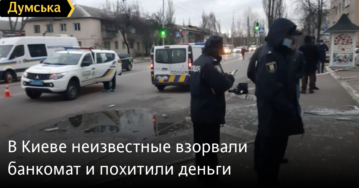 Двое неизвестных взорвали банкомат в Дарницком районе Киева, похитили оттуда кассеты с деньгами и скрылись. Как сообщает отдел коммуникации полиции Киева, в результате инцидента никто не пострадал. В городе введена специальная полицейская операция по задержанию злоумышленников. По данному факту открыто уголовное производство по ч. 5 ст. 185 УК Украины (кража, совершенная в особо крупных размерах или организованной группой). СМЕРТЬ РОССИЙСКИМ ОККУПАНТАМ! Заметили ошибку? Выделяйте слова с ошибкой и нажимайте control-enter Новости по этой теме: 12 января 2022: Харьковские станции метро ожидает масштабная проверка: в вестибюле подземки на площади Конституции рухнул потолок (фото) 8 января 2022: В Одессе из офиса фирмы выкрали сейф с внушительной суммой денег, золотом и пистолетом 27 декабря 2021: В лесополосе под Киевом нашли тело главврача из Ровенской области: по подозрению в убийстве задержаны таксист с приятелем 23 декабря 2021: В Киеве задержали подозреваемых мошенников, которые обманывали на свиданиях мужчин ради денег |