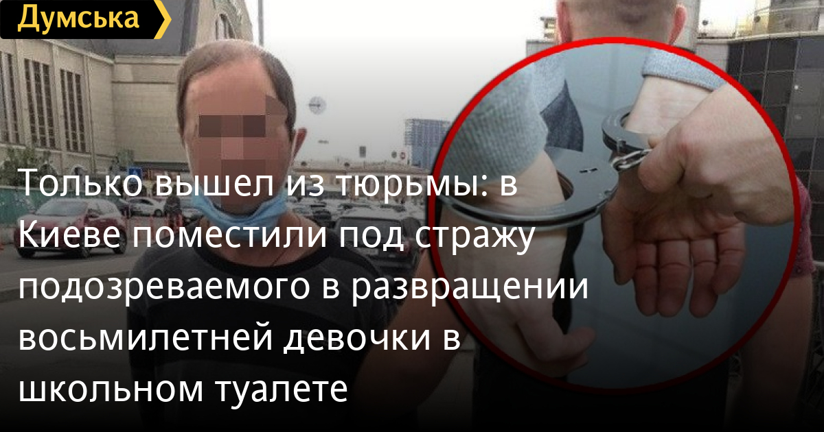 Только вышел из тюрьмы: в Киеве поместили под стражу подозреваемого в развращении восьмилетней девочки в школьном туалете49-летнего киевлянина, подозреваемого в развращении восьмилетней девочки, поместили под стражу по решению суда. Об этом сообщает пресс-служба столичной прокуратуры. По данным следствия, 15 сентября мужчина проник в школьный туалет, где совершил распутные действия с малолетней учащейся, воспользовавшись отсутствием посторонних лиц. Сообщается, что задержанный ранее был судим за аналогичные преступления. Причем, последний приговор вынес Голосеевский районный суд в декабре 2019 года. Мужчина был осужден к 12 годам лишения свободы, но 10 сентября вышел на свободу по «закону Савченко». СМЕРТЬ РОССИЙСКИМ ОККУПАНТАМ! Заметили ошибку? Выделяйте слова с ошибкой и нажимайте control-enter |