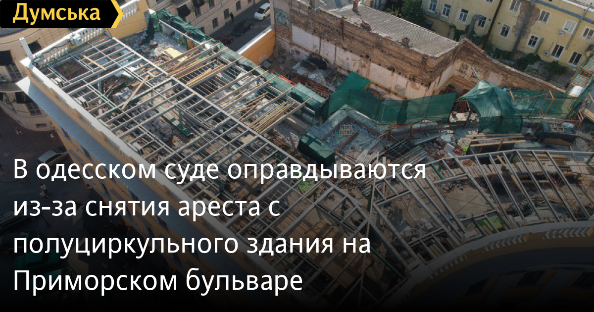 В одесском суде оправдываются из-за снятия ареста с полуциркульного здания на Приморском бульвареПресс-служба Киевского районного суда отреагировала на публикации СМИ о том, что следственный судья Вадим Иванчук разрешил застройщику Руслану Тарпану «изуродовать культовый памятник архитектуры в центре Одессы». На сайте суда опубликован ответ журналистам и общественности. «Действительно, 20 сентября следственный судья Иванчук вынес определение, которым частично удовлетворил ходатайство о снятии ареста на имущество», — говорится в сообщении. Речь идет о полуциркульном здании на Приморском бульваре, 7, которое принадлежит ООО «Гранд Отель». Это памятник архитектуры национального значения. На его крыше сейчас ведутся строительные работы: чердак превращают, по сути, в мансарду. В пресс-службе суда растолковывают: мол, арест сняли не со всего здания, а только с крыши. Якобы нужно закончить работы, пока погода не испортилась, а то весь памятник затопит с неба. «Таким образом, определением суда отменен лишь запрет на проведение ремонтных работ на крыше здания, чтобы предотвратить негативные последствия и повреждение памятника архитектуры», — настаивают в суде. Напомним, заметили активность на полуциркульном здании краеведы и общественники, занимающиеся охраной культурного наследия. Они предположили, что на здании могут достроить еще один этаж. Собственником здания является группа «Инкор» бизнесмена Руслана Тарпана. В пресс-службе «Инкора» заявили, что все работы ведутся на законных основаниях. «В последний раз реконструкция проводилась в 1944-1945 году после попадания в здание фугасной бомбы. Именно тогда исторический конструктив кровли был изменен. Подчеркиваем, что работы, которые сегодня завершаются, не ведут к изменению исторических отметок кровли», — отмечают в группе компаний «Инкор».