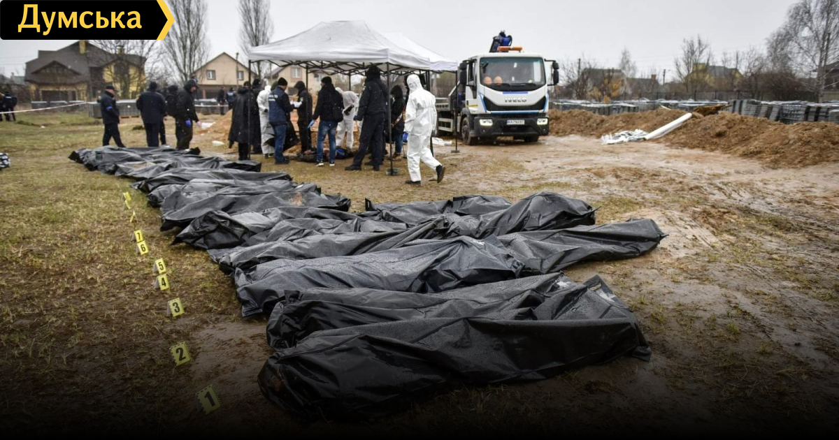Зверства российских нацистов: в Киевской области найдено больше тысячи тел мирных жителейТела 1084 мирных жителей обнаружили в Киевской области. Об этом в эфире национального телемарафона «Єдині новини» сообщил начальник регионального главка полиции Андрей Небитов. По его словам, 50-75% мирных жителей были убиты из стрелкового оружия – пулеметов, автоматов или снайперских винтовок. «Это гражданские люди, которые не имели отношения ни к территориальной обороне, ни к другим военным формированиям», — отметил Небитов. Остаются неопознанными более 300 тел погибших. СМЕРТЬ РОСІЙСЬКИМ ОКУПАНТАМ! Помітили помилку? Виділяйте слова з помилкою та натискайте control-enter |