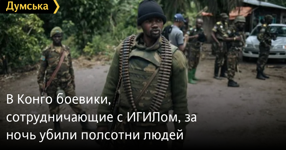 По меньшей мере, 50 человек погибло в Демократической Республике Конго от рук боевиков, которые сотрудничают с группировкой ИГИЛ. Об этом сообщает Yahoo News. По информации мониторинговой группы Kivu Security Tracker (KST), налетчики напали на два поселка. В Чаби они убили 22 местных жителя, еще 28 в поселении Бога, в том числе детей и стариков. При этом местные СМИ со ссылкой на очевидцев пишут, что жертв, вероятно, может быть больше. На месте происшествия продолжают находить тела погибших. Отметим, что этот регион Конго нередко страдает от действий членов группировки «Объединенные демократические силы» ADF, которые связаны с исламистами. Кроме того, там часто вспыхивают межэтнические конфликты. СМЕРТЬ РОССИЙСКИМ ОККУПАНТАМ! Заметили ошибку? Выделяйте слова с ошибкой и нажимайте control-enter Новости по этой теме: 12 января 2022: Харьковские станции метро ожидает масштабная проверка: в вестибюле подземки на площади Конституции рухнул потолок (фото) 8 января 2022: В Одессе из офиса фирмы выкрали сейф с внушительной суммой денег, золотом и пистолетом 27 декабря 2021: В лесополосе под Киевом нашли тело главврача из Ровенской области: по подозрению в убийстве задержаны таксист с приятелем 23 декабря 2021: В Киеве задержали подозреваемых мошенников, которые обманывали на свиданиях мужчин ради денег |
